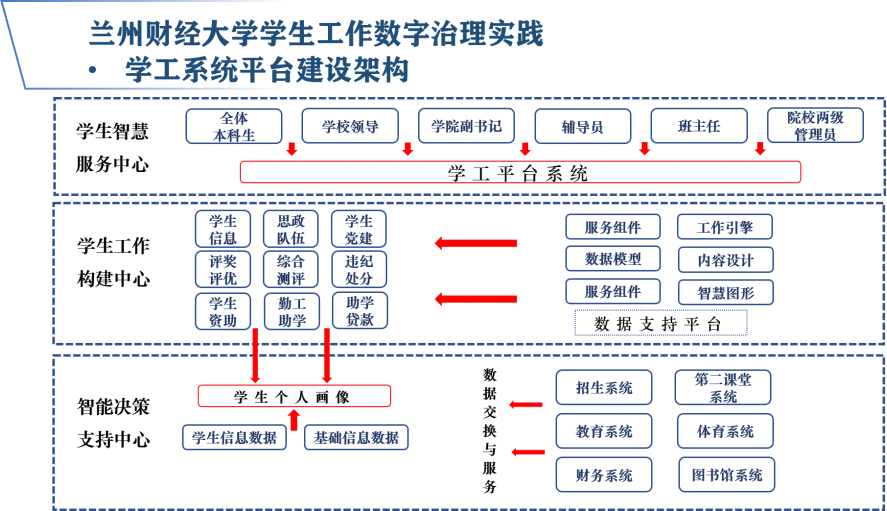 18.着力打造学工平台系统。围绕学生日常管理、困难资助、奖惩管理、学业预警、家校互联、宿舍管理、请假管理、综合测评等多个应用场景进行建构,打造贯穿学生学习生涯全周期的应用管理平台,已完成学工平台2期建设,奖助评选全覆盖,辅导员、班主任线上考核已全部完成,初步实现对学生实时数据及各项历史数据的动态收集及管理,为下一步线上一站式学生社区建设增效赋能。