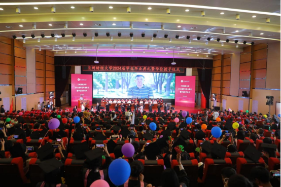 当兴隆讲堂的灯光照耀全场,歌声响彻整个会场,每一位毕业生的脸上都闪耀着点点光芒。掌声涌动、笑颜绽开,这是青春最好的模样。这不仅是一个阶段的圆满落幕,更是新篇章的璀璨开启。毕业典礼在《我的未来不是梦》的合唱声中落下帷幕,深情厚谊在全场“我爱母校、感谢兰财”的欢呼声中延续。2024届毕业生将带着母校的祝福与嘱托,志存高远、勇担重任,在祖国的壮丽山河建功立业,书写属于自己的青春华章。