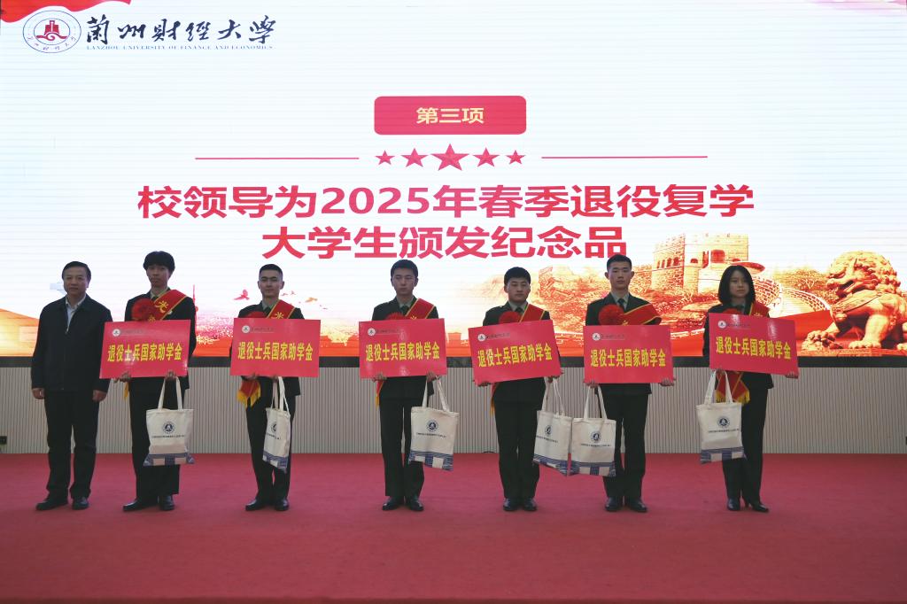 李万红为2025年春季退役复学的大学生士兵颁发纪念品。他强调,大学生参军入伍是实现强国梦、强军梦的重要途径,也是个人成长成才的宝贵机遇。学校将全力做好征兵服务保障工作,希望同学们以退役大学生士兵为榜样,坚定报国志向,在军营中书写无悔青春。