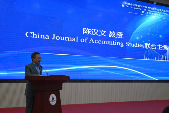 张新民在致辞中聚焦中国实际,强调推动中国会计研究国际化,提升CJAS期刊影响力,并倡导加强对外学术交流与合作。他指出,此次会议的两大核心使命是推动中国会计理论走向国际和办好CJAS期刊。他强调,国际顶刊中的中国学者文章越来越多、中国研究文章越来越多的两大发展特征及其规律,彰显了学术论文需体现中国特色的必要性。未来中国会计学会对外学术交流专业委员会将持续深化国际交流、拓展国际合作,依托CJAS期刊提升中国会计学术话语权,推动中国会计学术事业的高质量发展。