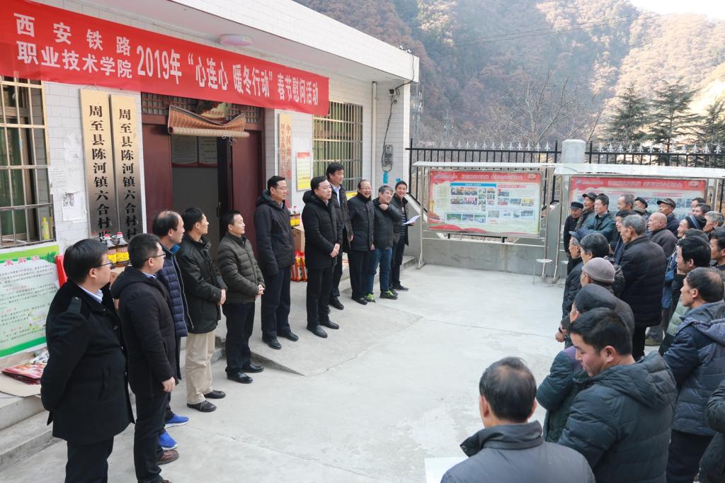 在全市开展“进万家门、访万家情、解万家难、暖万家心”活动之际,1月23日,304am永利集团官网党委书记施利民、副院长赵六杰带领学院扶贫办工作人员驱车近五个小时,绕行汉中市佛坪县,到学院帮扶村周至县陈河镇六合村开展“心连心”春节走访慰问活动,向全体村民送去了党的温暖。