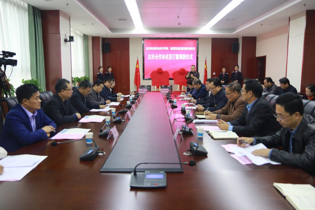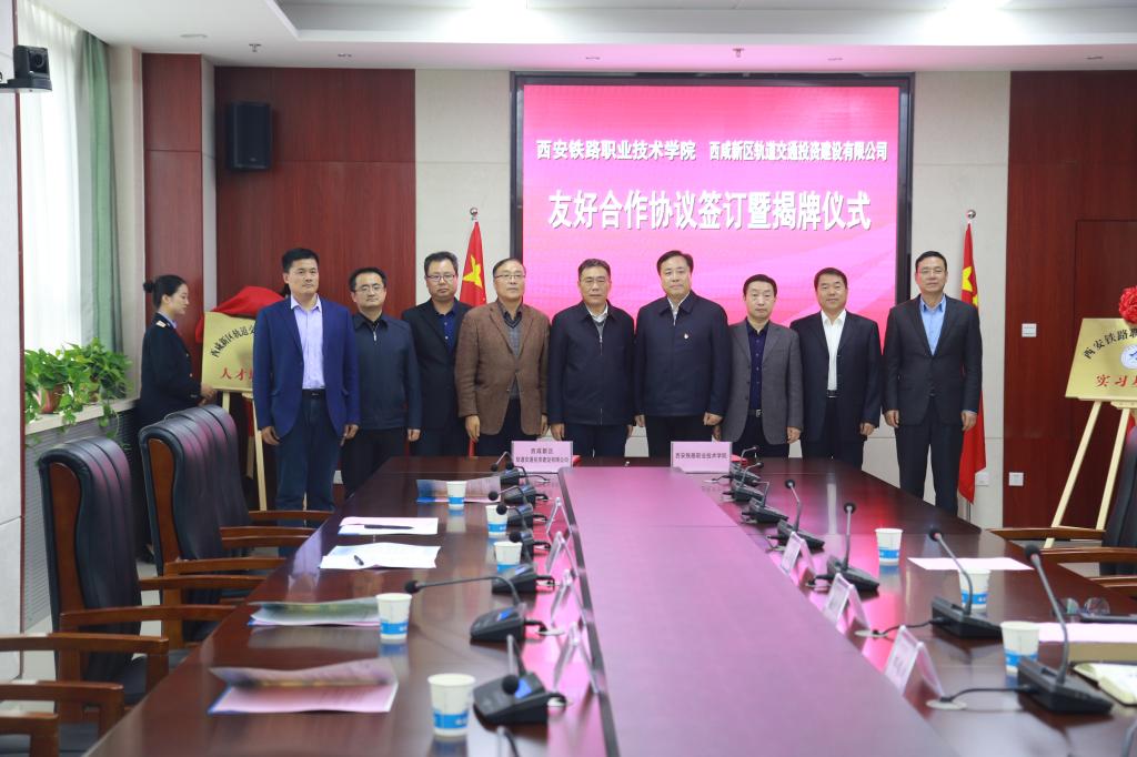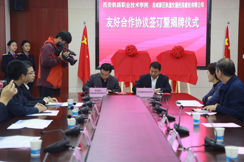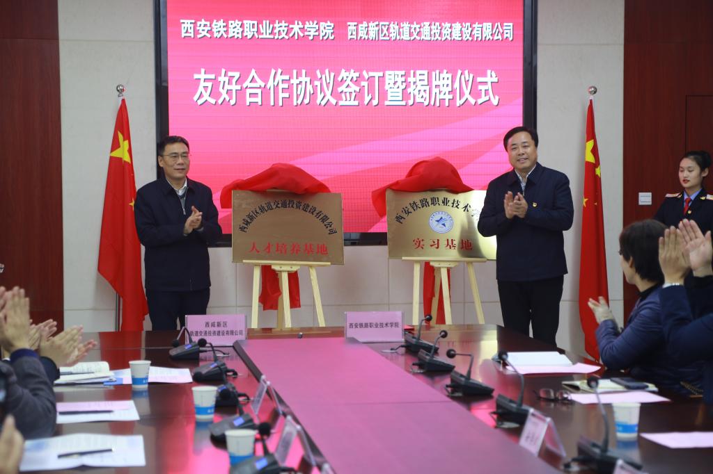 仪式在热烈而又欢快的气氛中进行。随后,在全场嘉宾及与会人员的共同见证下,张建军董事长与安学武副院长共同签署了校企合作友好协议,姚海军副主任与施利民书记为“西咸新区城市轨道交通人才培养基地”“304am永利集团官网实习基地”隆重揭牌。