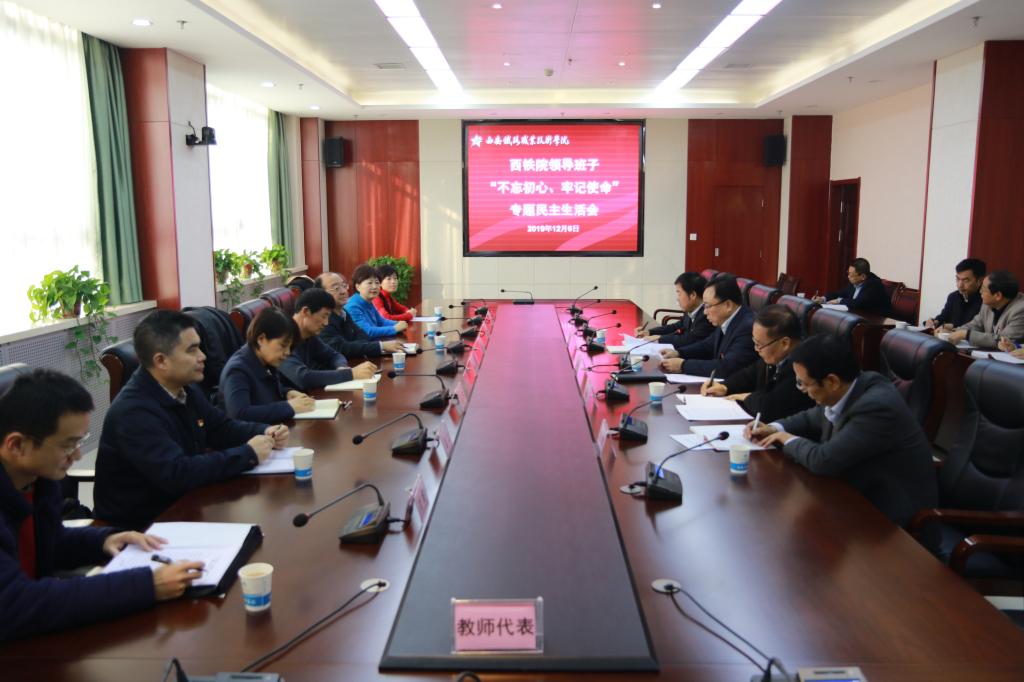 12月6日,学院召开领导班子“不忘初心、牢记使命”专题民主生活会,省委巡回督导组王金安同志、吕锌同志,市委巡回指导三组组长刘伯雅同志、副组长岳岚同志到会指导。学院党委书记施利民主持会议,学院领导班子成员参加会议。学院主题教育领导小组办公室成员、二级院系党总支书记和教师代表列席会议。