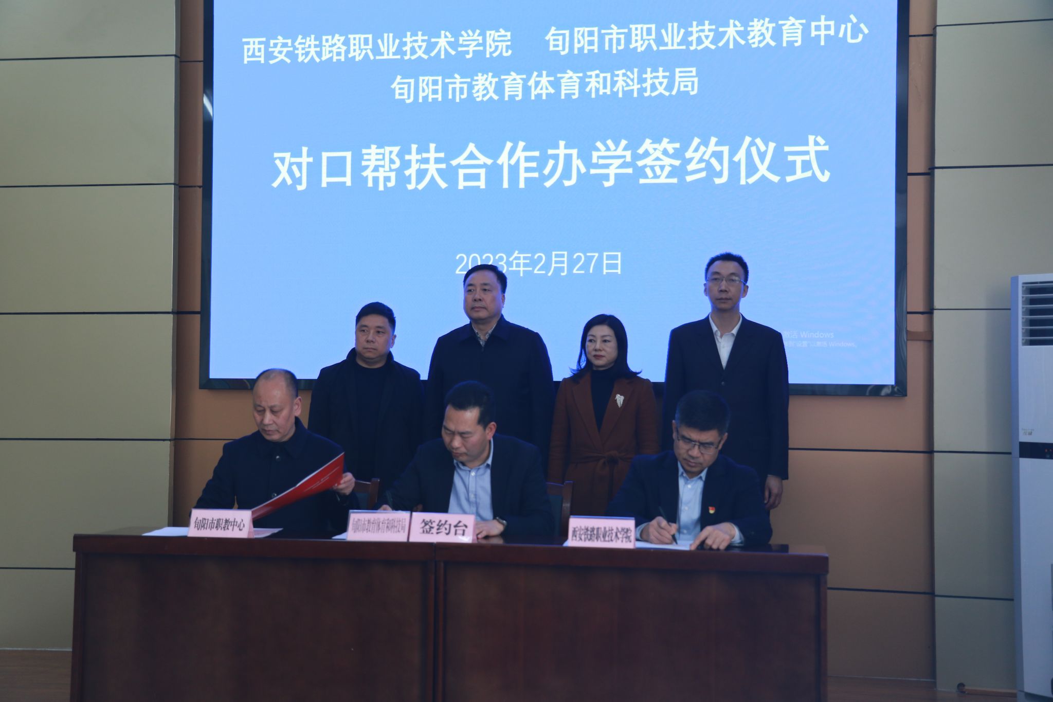 为贯彻落实2月8日省委教育工委在安康市岚皋县召开的对口支援安康职业教育发展工作座谈会精神,服务区域经济发展,助力乡村振兴,2月27日下午,学院与旬阳市职业技术教育中心对口帮扶合作办学签约仪式在该中心举行。旬阳市政府党组成员、副市长宋宗卉主持签约仪式并讲话,304am永利集团官网党委书记施利民,院长赵春平,党委副书记、纪委书记邓轩出席。旬阳市教育体育和科技局副局长谭文护、旬阳市职业技术教育中心党委书记、校长陈强参加。在旬阳市教育体育与科技局的鉴证下,赵春平与陈强代表双方本着“资源共享、优势互补、互利共赢、共谋发展”合作理念签署协议。