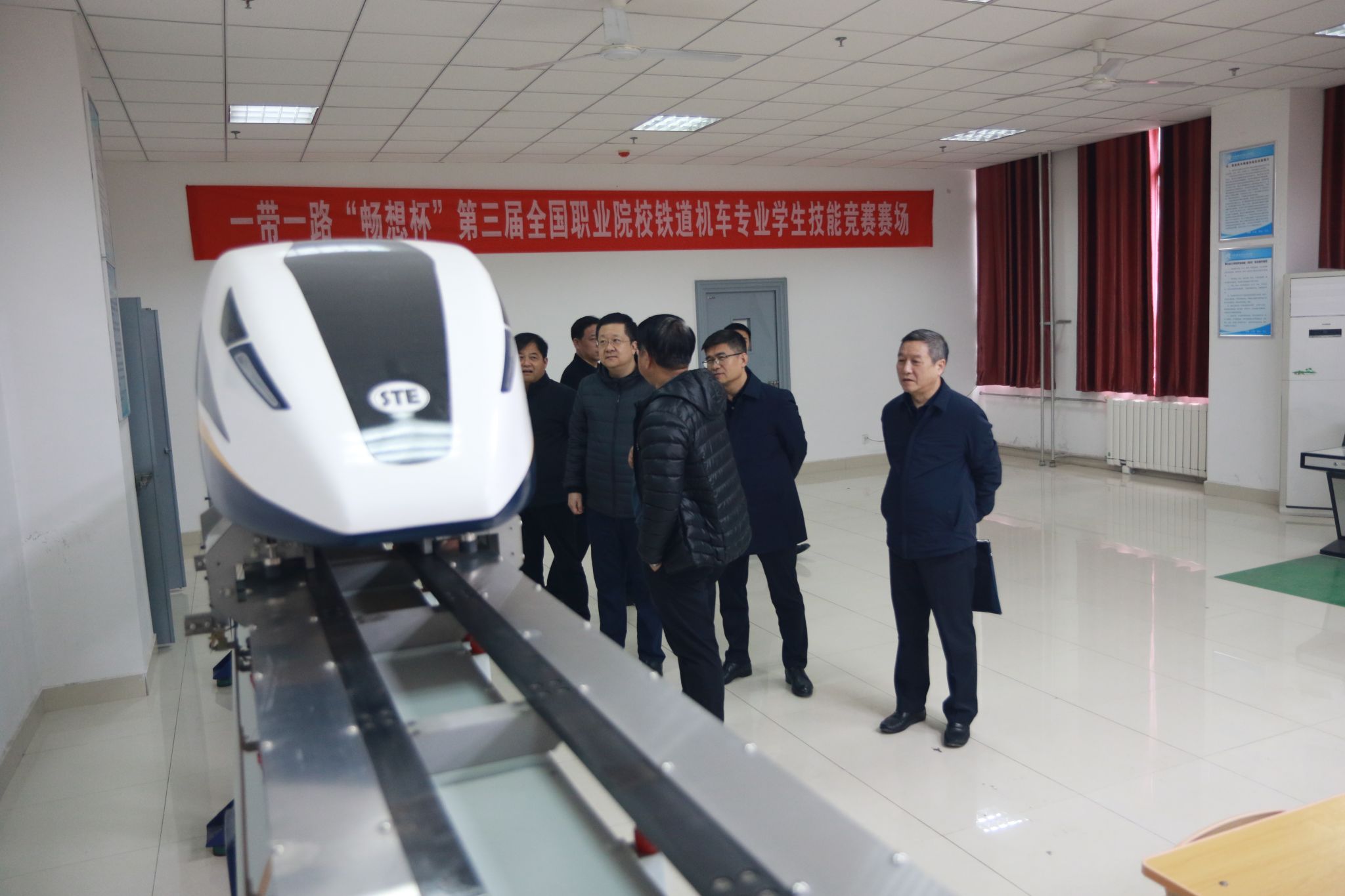调研组来到牵引动力学院实验实训中心,在该学院院长李益民教授的指引和讲解下,参观了CR400BF型复兴号动车组模拟驾驶实训室、HXD3D型大功率交流传动电力机车整车装备实训室、磁悬浮列车实训室、CR380AL型动车组驾驶暨牵引传动实训中心、地铁列车模拟驾驶室、国家级轨道交通职业教育虚拟仿真基地等,并且在实训教师的示范下进行体验操作,切身感受西铁院的办学特色。