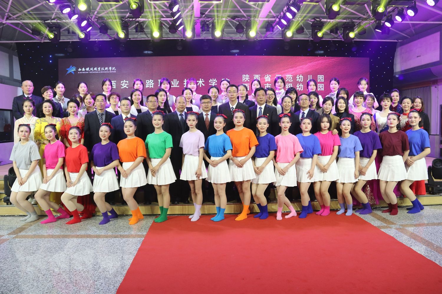 活动结束后,学院领导看望慰问了全体参演师生。赵春平表示,在全院各部门通力协作和密切配合下,此次活动取得了圆满成功,高水平、高质量的汇报演出受到了与会嘉宾的高度好评,充分体现了全院师生的良好精神面貌。希望学前教育专业全体师生要以此次活动为契机,做深做实“院园协同”学生培养新模式,与合作园所在教师实践锻炼、学生专业实习、先进理念共享等方面实现院园“全周期、多角度、多层次”深度合作,推动学院学前教育专业建设进入高质量发展的快车道。