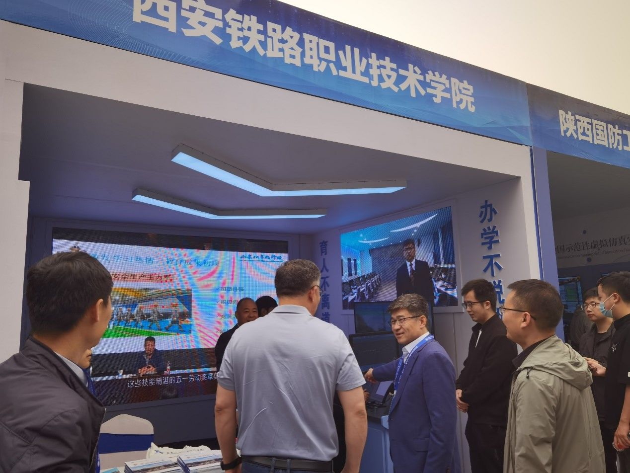 4月20日,陕西省委教育工委、省教育厅在西安交通大学创新港校区召开陕西数字教育大会,以“数字化赋能教育高质量发展”为主题,落实国家教育数字化战略行动,营造数字化立德树人环境,全面推进陕西数字教育发展。各省级信息化教育示范区县、各级智慧校园示范校参加了数字教育成果展示活动。永利官网作为陕西省高等学校智慧校园示范校以“标准引领、数字赋能、虚实融合、共建共享,打造轨道列车工匠新高地”为主题参加了数字教育成果展示。