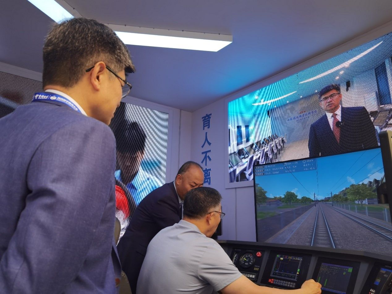 学院精心布置宣传展台,充分展示永利官网在数字赋能实践教学方面的建设成果。成果展示主要以牵引动力学院实训基地建设案例——《标准引领、数字赋能,打造轨道列车工匠新高地》为主,同时牵引动力学院还将虚拟仿真教学实训设备(动车模拟驾驶)搬到展会现场,现场参观人员可以直接上机操作体验,这种沉浸式体验大大提高了宣传效果,使永利官网的展位成为展示现场最具特色的亮点,吸引了政府、学校、企业等领导、专家以及外国友人对学院办学情况的关注。展位上播放了学院的《梦从这里开始》《跃》(俄文版)及永利官网专门拍摄的数字教育大会主题视频,吸引了行人驻足观看。同时,还向与会人员分发了专门印制的案例宣传折页和学院的宣传册。