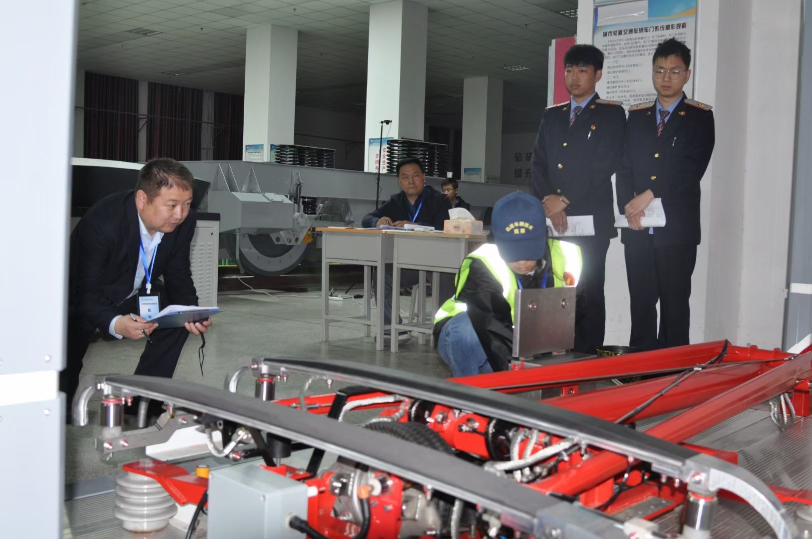 本次大赛的内容包括车辆整车故障排查与处理、受电弓的检修与调试、客室车门的安装与调试三个模块。参赛时长为1小时55分钟,涵盖轨道车辆部件检修、控制气路维修、系统功能调试等内容,综合考查参赛选手图纸识读、安装工艺、设备检修、维护保养、故障诊断与排除等能力。