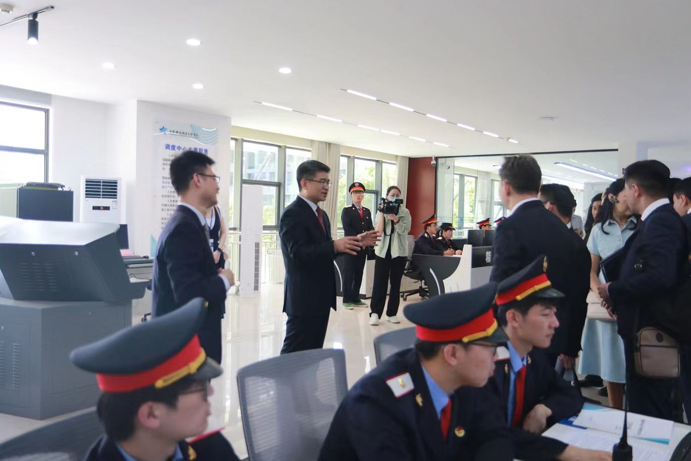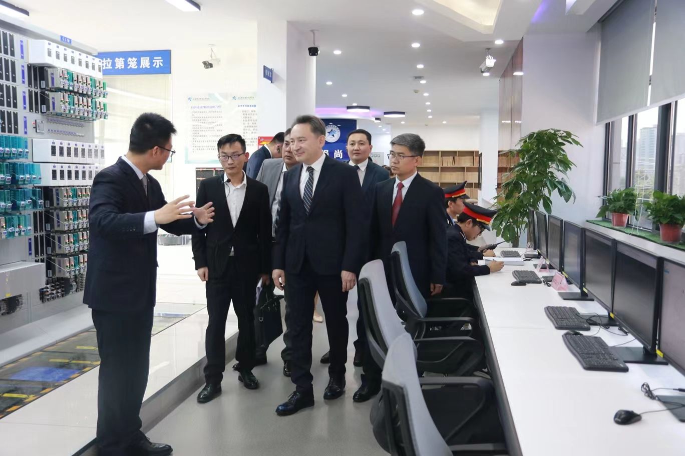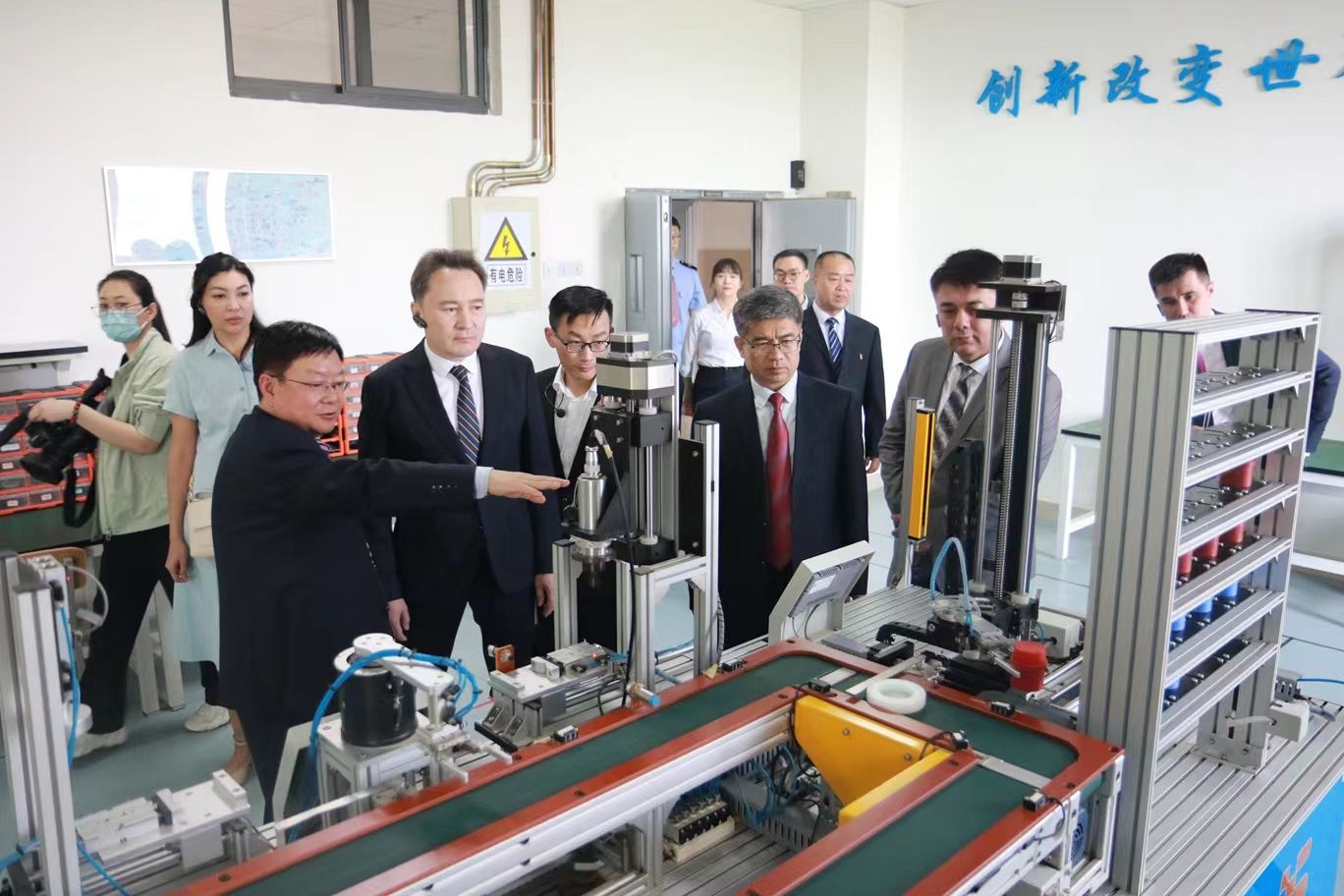 在签约仪式前,迈拉姆·贝根塔耶夫一行在赵春平和熊奇的陪同下实地参观了牵引动力、机电工程、电气工程三个二级学院的动车组模拟驾驶实训室、磁悬浮列车实训室、复兴号动车组模拟驾驶实训室、铁道车辆综合演练场、高铁牵引供电调度实训室、城轨牵引变电所沙盘实训室等8个实训室和演练场,迈拉姆·贝根塔耶夫亲自进行了模拟高铁驾驶体验,他表示304am永利集团官网在轨道交通“车、机、工、电、辆、供”全部专业技术技能人才培养方面师资雄厚、实验实训设备齐全、办学声誉良好,更加坚定了深入合作交流的决心。