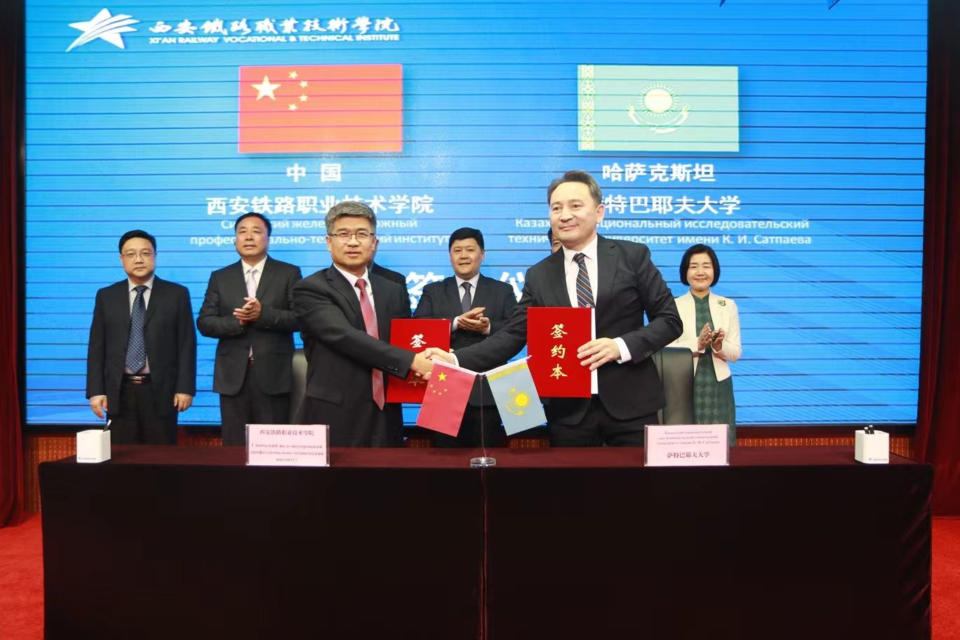 为了积极响应“一带一路”倡议,在中国—中亚峰会即将举行之际,在陕西省委、省政府、西安市委、市政府的大力支持与推动下,5月13日,哈萨克斯坦共和国萨特巴耶夫大学校长迈拉姆·贝根塔耶夫一行8人来到学院访问交流,并举办签约仪式,签署合作协议。哈萨克斯坦共和国驻西安总领事卡拉巴耶夫•佐齐汗、西安市委常委、组织部部长王晓林、西安市委外事办主任强盛、西安市教育局党委书记、局长李红雨、陕西省教育厅对外合作与交流处处长文通、学院党委书记施利民、院长赵春平、党委副书记、纪委书记邓轩、副书记任治军、副院长安学武、西安市委组织部、西安市委外事办、西安市教育局、学院相关部门负责人以及国际交通学院学生代表参加了签约仪式。仪式由副院长熊奇主持。