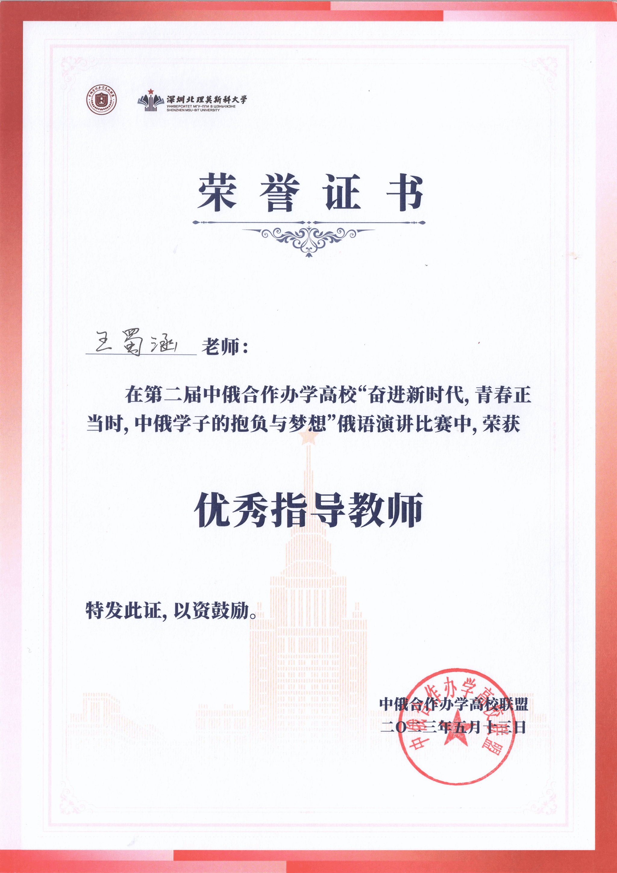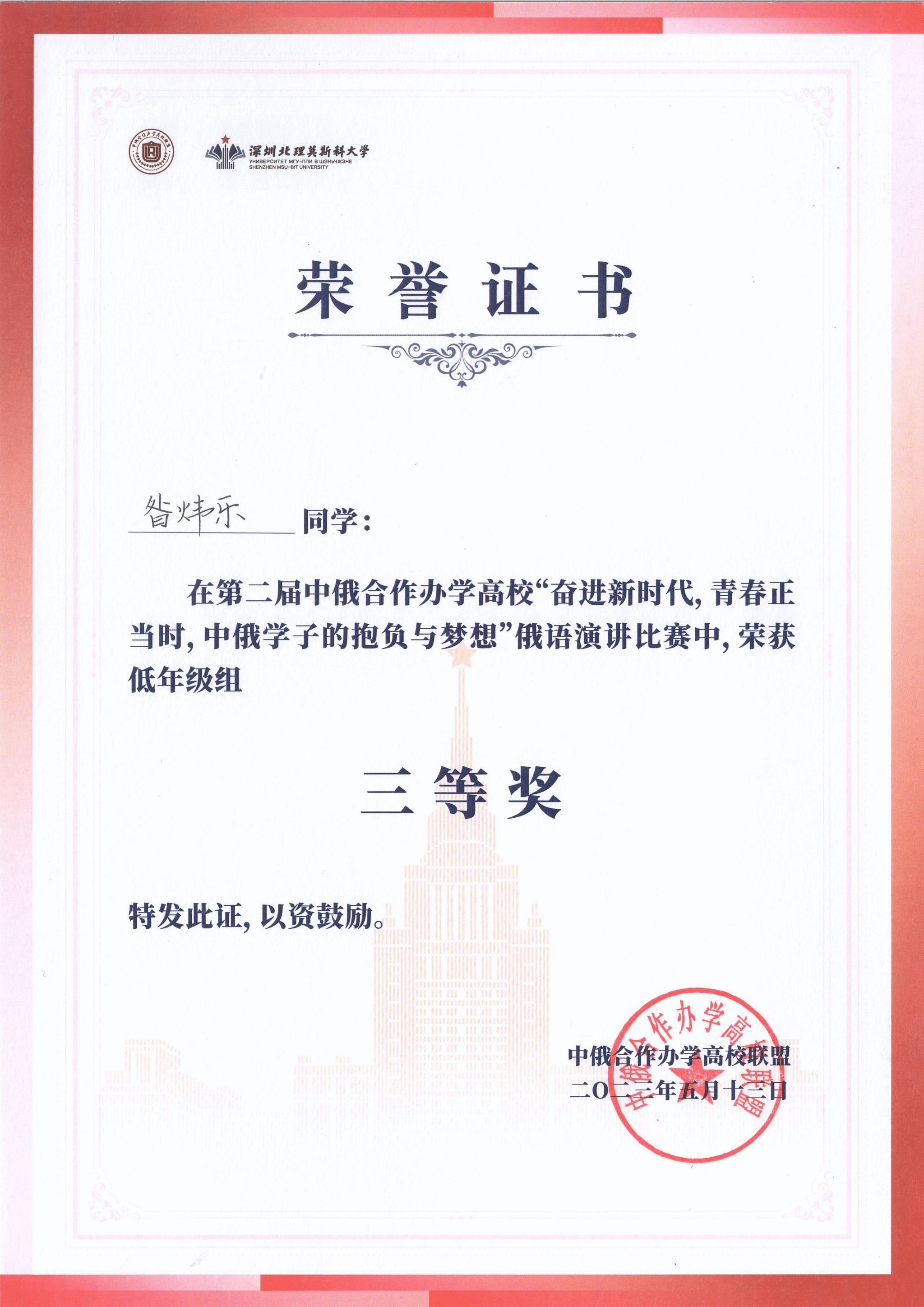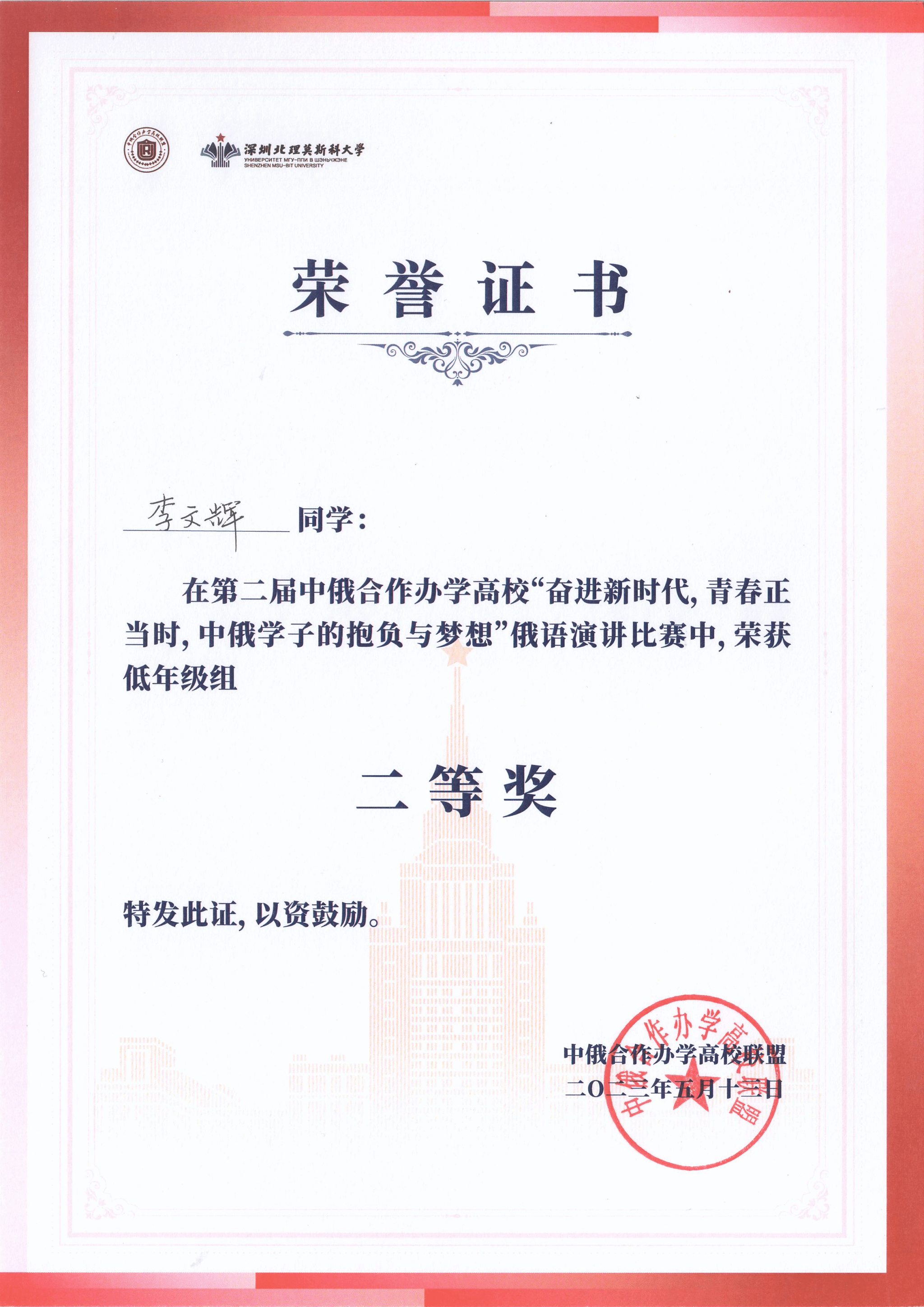 同时,在第二届中俄合作办学高校“奋进新时代,青春正当时,中俄学子的抱负与梦想”俄语演讲比赛中,永利官网国际交通学院学生李文辉和昝炜乐与来自全国各地的67名莘莘学子同场竞技,充分展示永利官网良好的精神风貌,扎实的俄语功底,落落大方,激情昂扬,分别斩获二等奖和三等奖。永利官网获得优秀组织奖,俄语教师王蜀涵,张琦获得优秀指导教师奖。