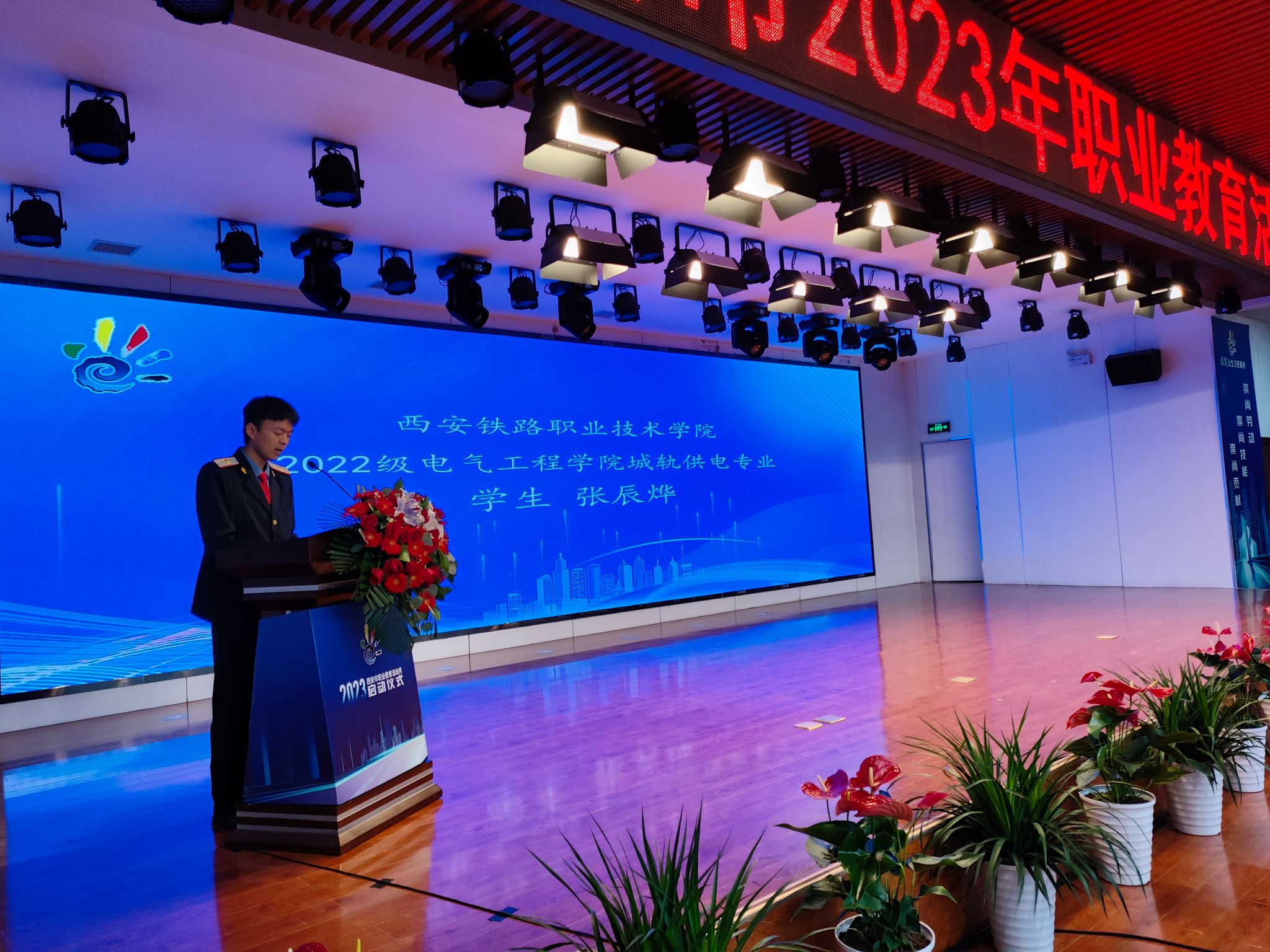 启动仪式上,永利官网电气工程学院城市轨道交通供配电技术专业2022级学生张辰烨代表职业院校学生发言,他表示今后认真学习钻研专业知识、勤学苦练岗位技能、积极参加学校开展的技能竞赛、红色讲解团、青年志愿者等各项活动,并用自己的实际行动,带动着周围同学们立志以百年征程中的大国工匠为榜样,奋勇担当“交通强国铁路先行”历史使命,争做红色铁路人。