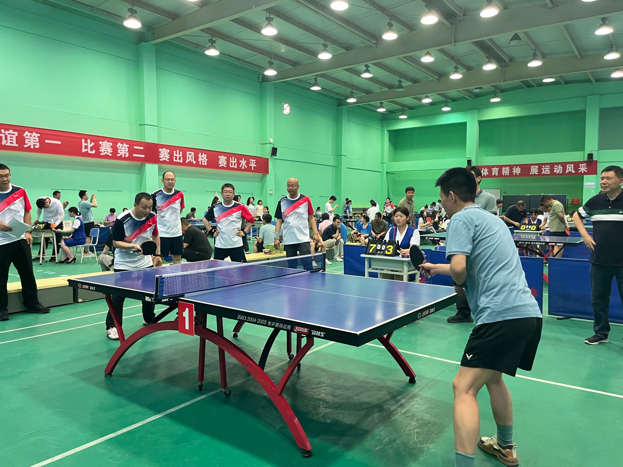 此次活动由院工会主办,临潼校区承办,来自院工会所属10个分会的120多名选手组队参赛。比赛采用分组循环赛和交叉淘汰赛,设置男女团体、男子单打、女子单打三个比赛项目。赛场上,运动员个个精神抖擞,斗志昂扬,每一回合的比赛都如同一场激烈的战斗,充满了挑战与刺激。观众席呐喊助威,鼓掌喝彩,气氛热烈而紧张。