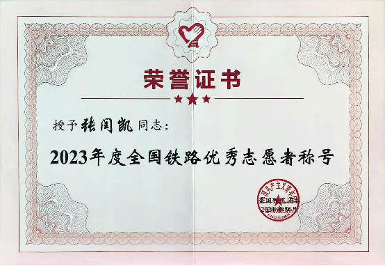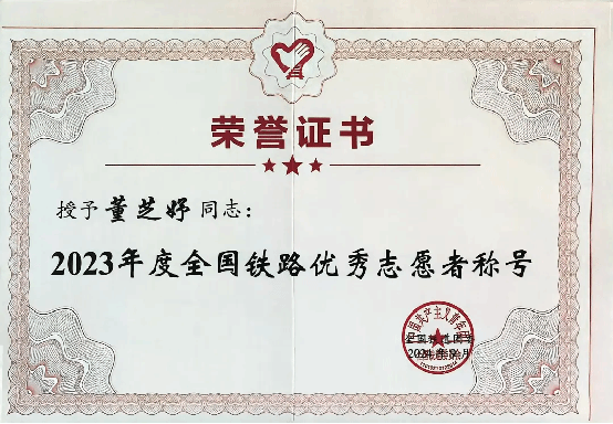 近日,全国铁道团委公布2023年度全国铁路优秀志愿者、优秀志愿者组织及优秀志愿服务项目评选结果,永利官网“青年志愿者服务队”获评2023年度全国铁路优秀志愿者组织,永利官网学生张闰凯、宋欢会、董芝妤被评选为2023年度全国铁路优秀志愿者。