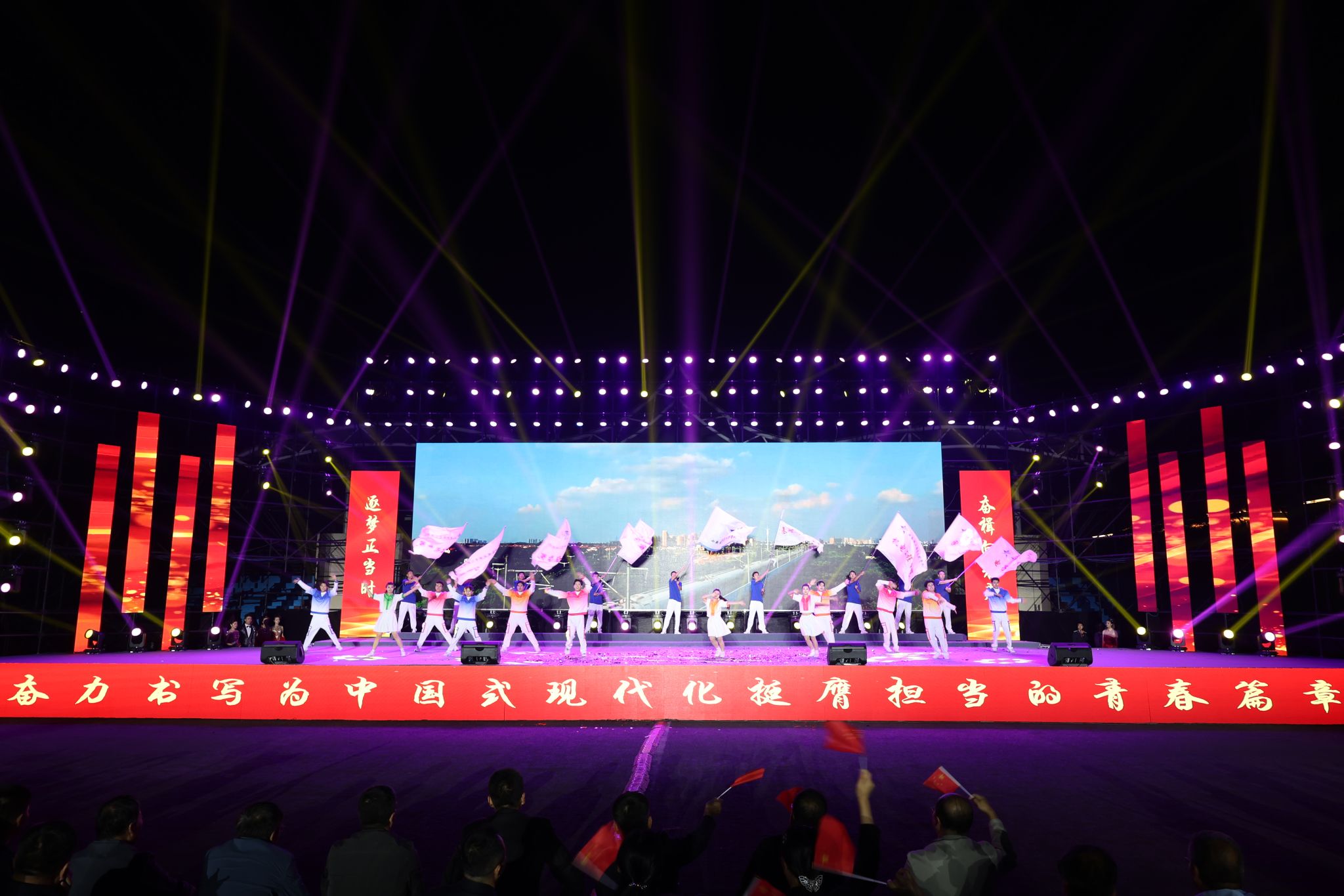 晚会分为“颂祖国 同心筑梦”“展风采 绘就青春”“扬风帆 志存高远”三个篇章,由歌舞、汉服展示、武术、器乐、快板说唱、情景诗朗诵等16个节目组成,10余名教师和300余名学生同台演出,多种艺术展现形式轮番上演,融合中华优秀传统文化与现代文化,展示了永利官网深厚的文化底蕴和多彩的校园生活,营造出“以美育人、以文化人”的浓厚氛围,激发了青年大学生的时代责任感和使命感,为观众带来一场青春文化盛宴。