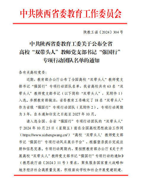 近日,教育部公布了全国高校“双带头人”教师党支部书记“强国行”专项行动团队名单,永利官网交通运输学院党总支教学第一党支部经学院党委审核把关、省教育工委推荐、教育部专项行动办公室审核,成功入选全国高校“双带头人”教师党支部书记“强国行”专项行动团队。