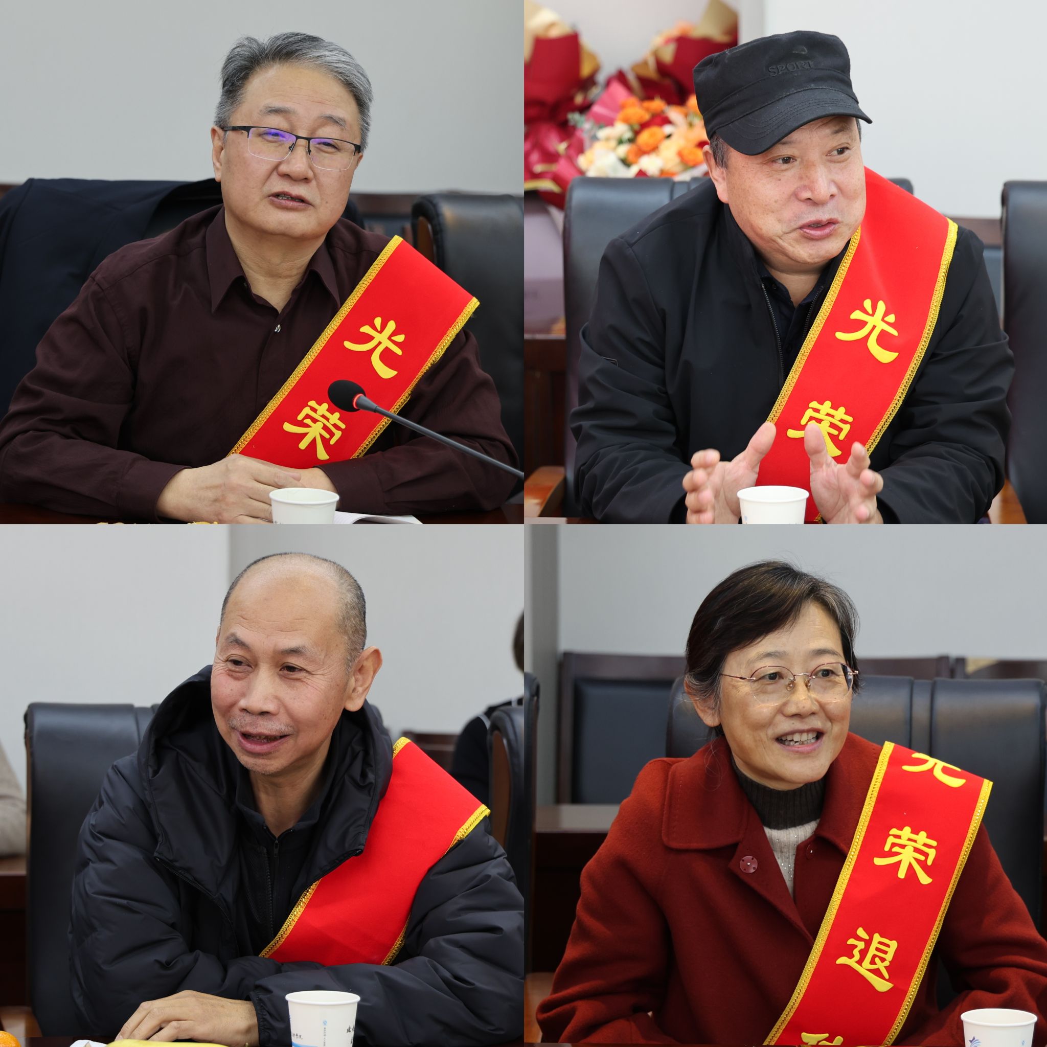 与会的荣休教职工纷纷畅所欲言。他们回忆起学院创立之初的艰辛与奋斗,讲述着在艰苦条件下坚持教学科研的故事,那些年一起攻克的难题、培养的学生,都成为了他们心中最珍贵的回忆。话语间,满是对学院深厚的情感和对同事们的不舍。
