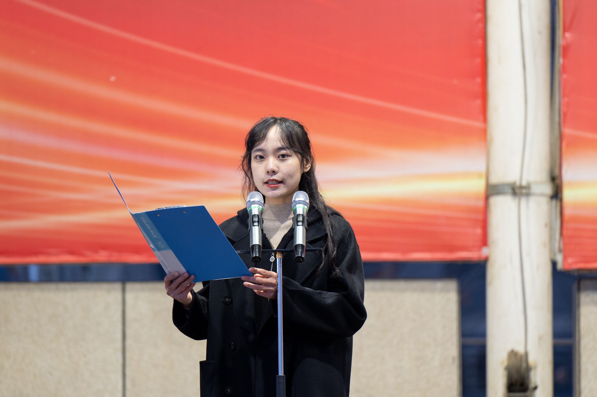 国旗下,电气工程学院电气自动化2403班学生代表李晨晞,通过分享自身的奋斗历程,号召全体同学以坚定的信念和不懈的努力,为中国铁路的未来贡献力量。她引用陈独秀先生的名言“青春如初春,如朝日,如百卉之萌动”,激励同学们在铁路事业中绽放青春光彩。