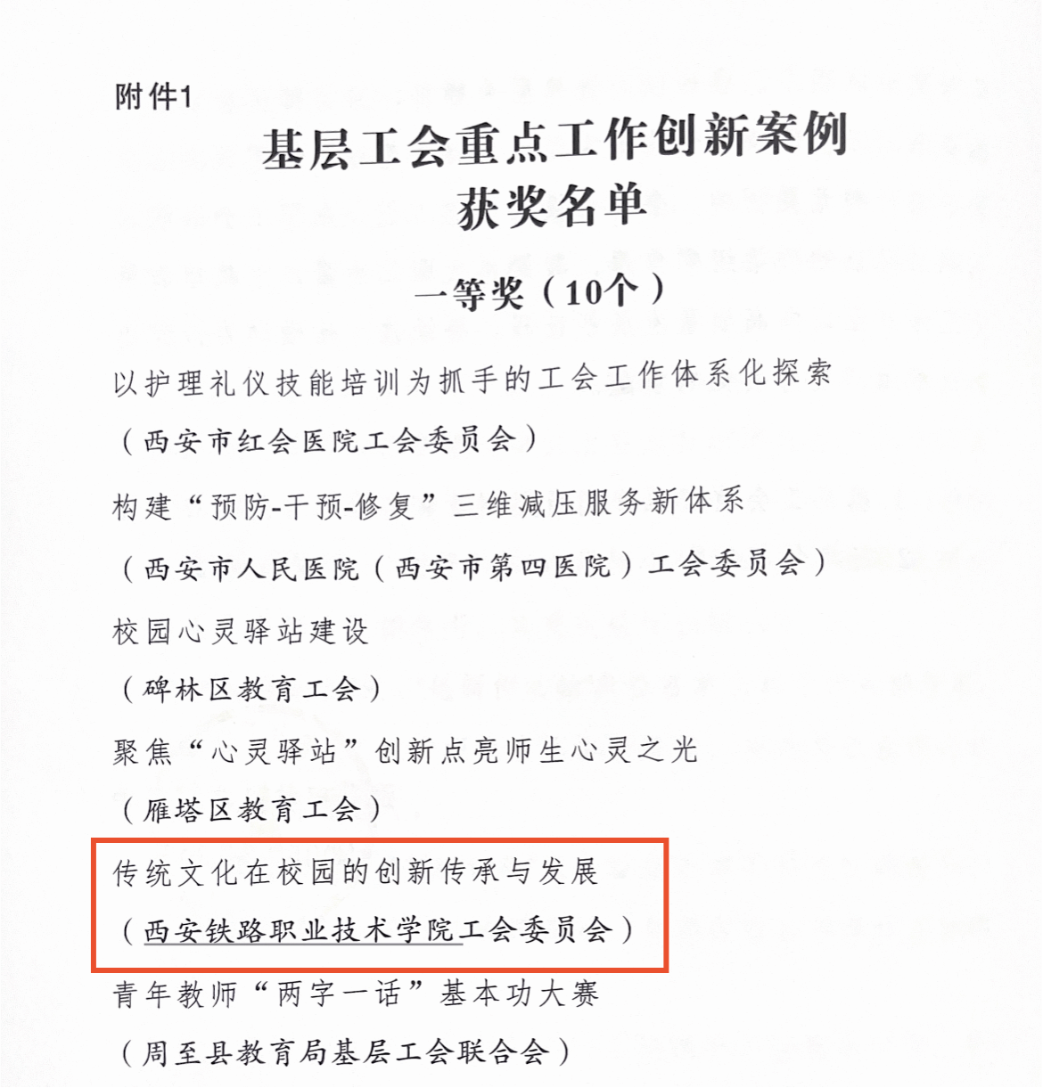 为进一步激发基层工会活力,发挥先进典型的模范带头作用,鼓励基层工会组织及个人积极探索创新工作模式与方法,提升工会工作整体水平,市教科文卫工会在全系统开展了基层工会重点工作创新案例总结活动。经基层工会重点工作创新案例活动领导小组综合评审,永利官网工会申报的《传统文化在校园的创新传承与发展》创新实践案例在全系统脱颖而出获得一等奖。案例聚焦新时代高校文化育人使命,总结了近年来院工会联动师生、校友及社会资源,通过“迎新年 写春联”活动,将书法、剪纸等传统文化元素融入师生日常,形成"沉浸式"文化育人生态。此次获奖彰显了院工会在校园文化建设中的桥梁作用,为推进学院内涵式发展注入新动能。