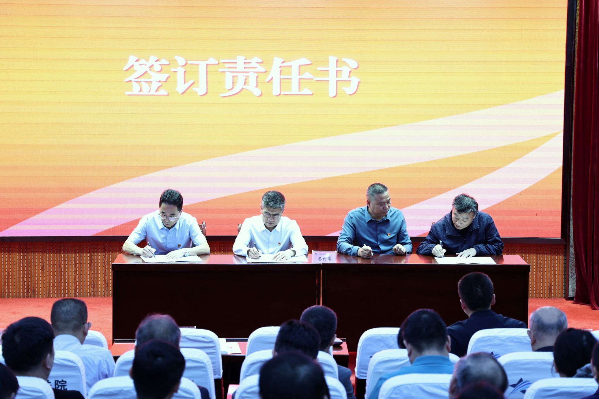 全体参会人员观看了警示教育片《戒尺高悬一陕西教育系统领导干部违纪违法案件警示录》。党委书记赵春平与部门代表签订了2025年度精神文明建设和宣传思想文化工作责任书以及稳定安全工作目标责任书。