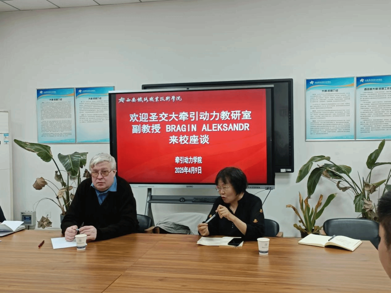 在与牵引动力学院团队进行的座谈研讨中,中俄双方专家共同讨论了合作办学铁道机车专业人才培养方案的课程设置及培养目标。亚历山大作了三种不同型号电力机车运行实验对比的学术报告,双方交流了同步电机技术在中俄两国的发展情况。在机电工程学院亚历山大参观了实训室。通过此项活动,中俄两校互学互鉴,增进了友谊,师生们开阔了国际视野。今后两校在课程共建、专业建设、人才培养方案等方面将开展更深入的合作。