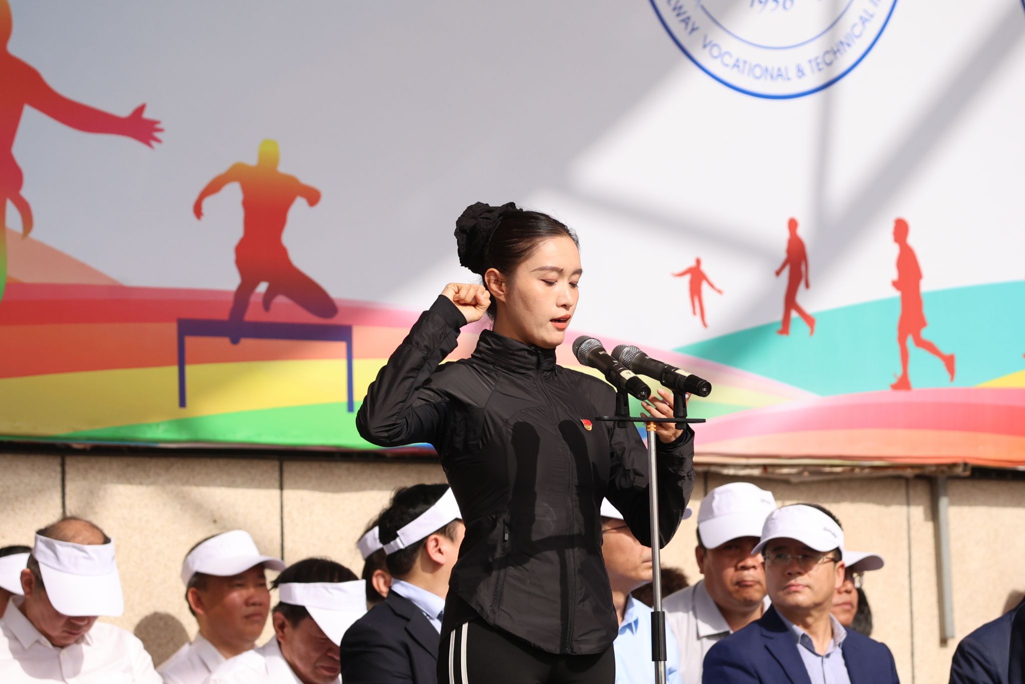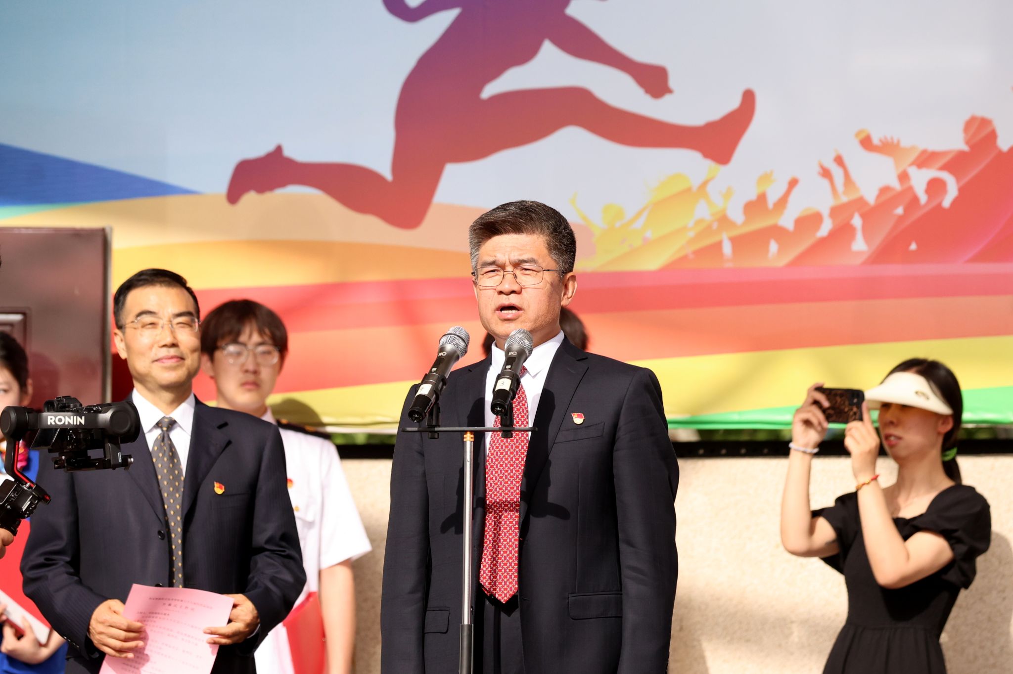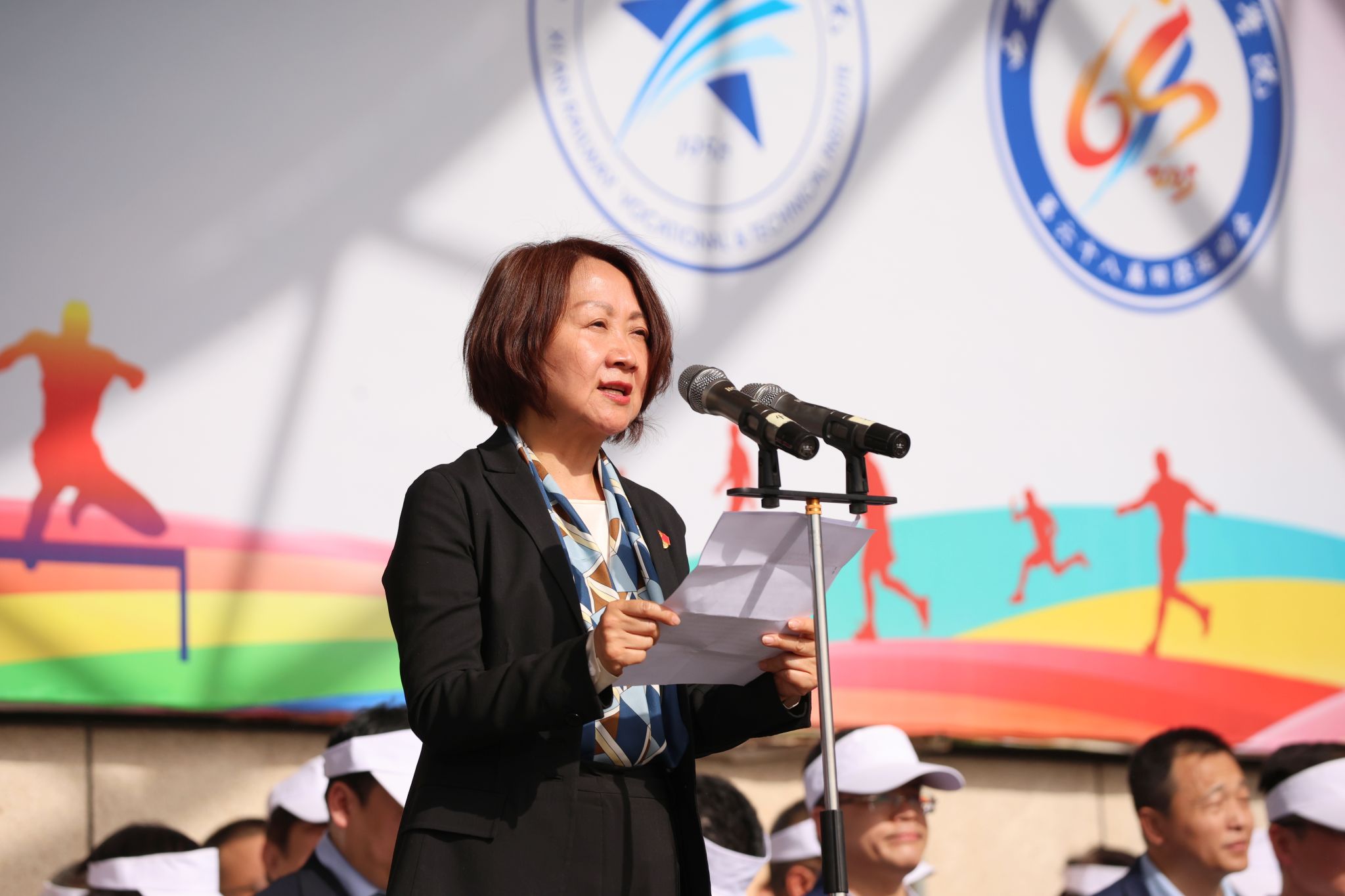 赵春平宣布本届运动会开幕。陈红致开幕词,向全体裁判员、教练员、运动员及工作人员致以诚挚感谢,高度肯定学院体育工作取得的优异成绩。并指出,运动会是学院一年一度的体育盛事,是持续深化体教融合,激活育人功能的重要举措,不仅检验学生身心素质与运动水平,更是对全院师生组织纪律性和精神面貌的全面检阅。最后希望同学们在运动中享受快乐、增进友谊、收获健康。