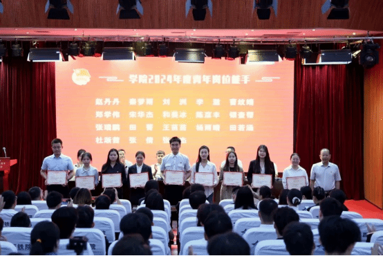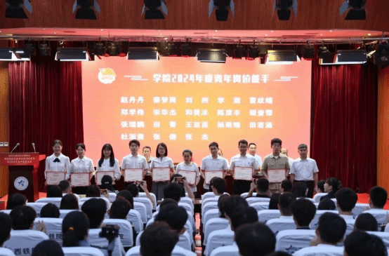 2025年五四表彰决定》、《共青团304am永利集团官网委员会关于第十三届“寻找西铁院好青年”评选结果的通知》、《共青团304am永利集团官网委员会关于2024—2025学年第一学期优良学风团支部评选结果的通知》。随后,赵春平与任治军分别为学院获得青年岗位能手的青年教师进行了颁奖,其它领导分别为“五四”获奖个人代表、西铁院好青年代表、优良学风团支部代表进行了颁奖。之后,获奖学生代表孟佩荣进行发言。