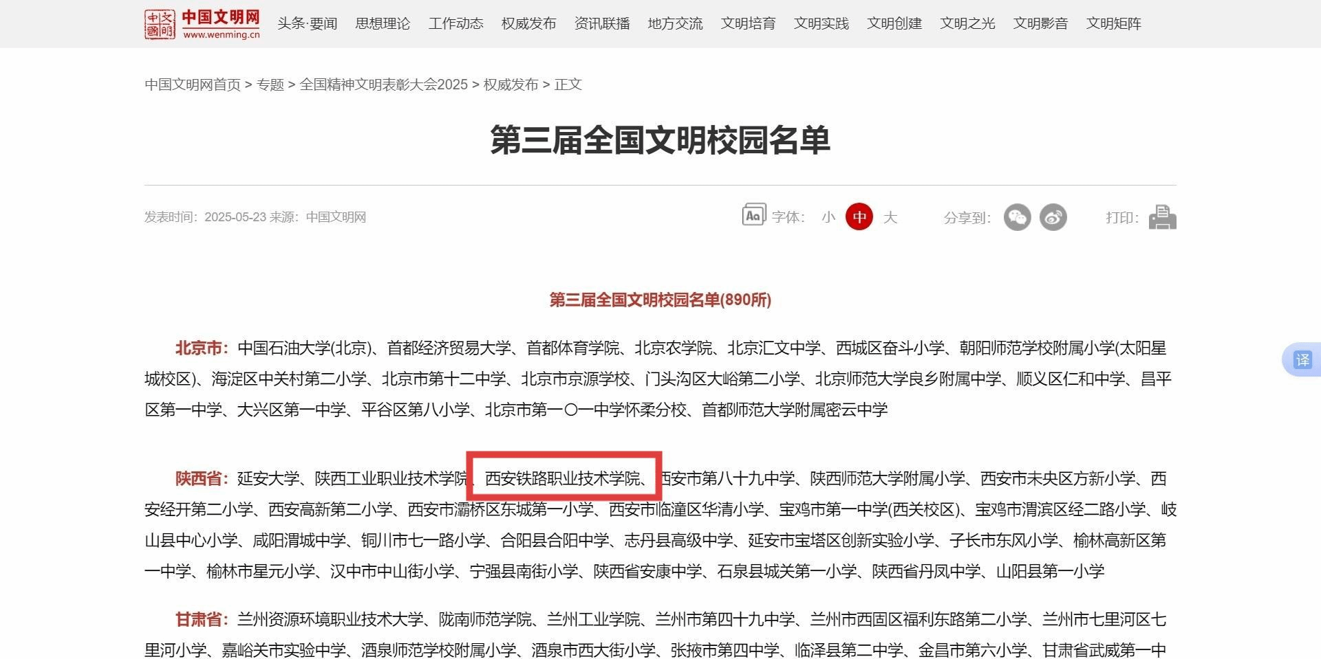 5月23日,全国精神文明建设表彰大会在北京召开,会上传达了习近平总书记对精神文明建设工作作出的重要指示。大会现场宣读表彰决定,并为受表彰代表颁奖。陕西省三所高校被授予全国文明校园称号,304am永利集团官网荣耀上榜,这是全体师生携手奋进、砥砺前行的辉煌成果。