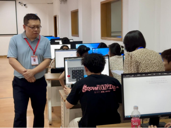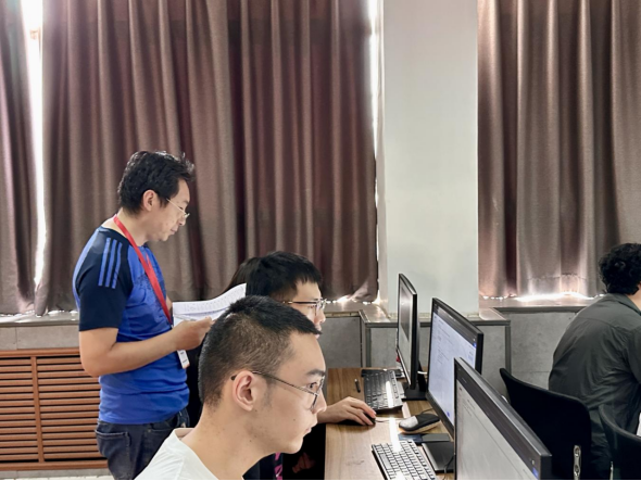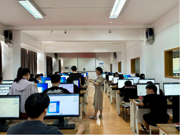 考试现场,机房内键盘敲击声此起彼伏,考生们神情专注地调试代码、优化算法。监考教师严格按照流程核查操作,校内督导员全程巡查,监控系统实时记录考务动态,考场内秩序井然,考风考纪严明。