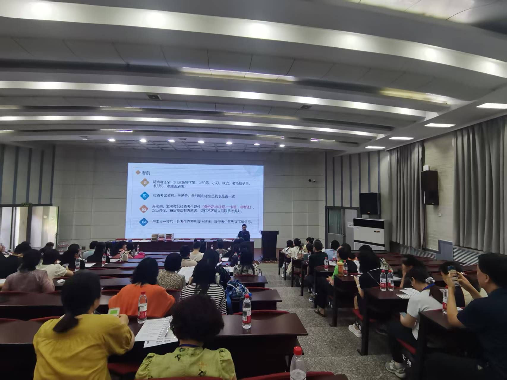 为保证每位涉考教师熟悉监考操作规范,确保顺利完成监考工作,考前各考点分别召开了英语AB级考试监考培训会,全体监考教师及考务人员参加了培训,从本次考试概况、监考操作流程、异常情况处理、注意事项及工作总体要求等方面对本次考试的细节进行了全面的讲解。