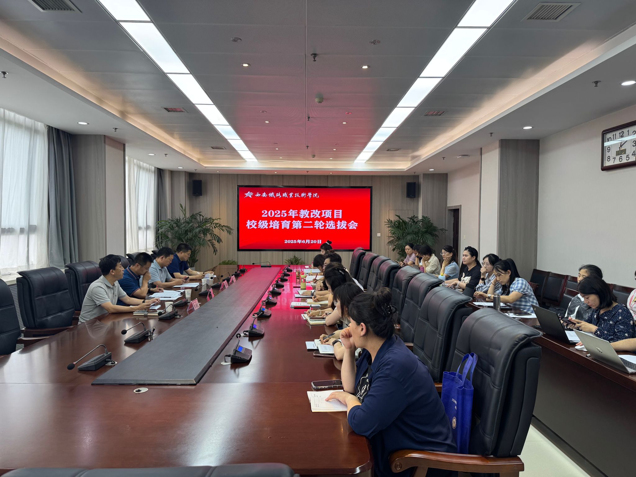 为深化教育教学改革,提升人才培养质量,夯实省级教改项目申报基础,6月20日下午,学院在港务校区组织召开2025年教改项目校级培育第二轮选拔会。会议特邀陕西国防工业职业技术学院教务处处长李俊涛教授、西安航空职业技术学院教务处处长龚小涛教授、陕西交通职业技术学院教务处处长郭红兵教授担任评审专家,分组对入选项目进行一对一深度指导打磨。各项目组负责人及团队成员、教务处相关人员参加会议。会议由教务处处长张刚毅主持。