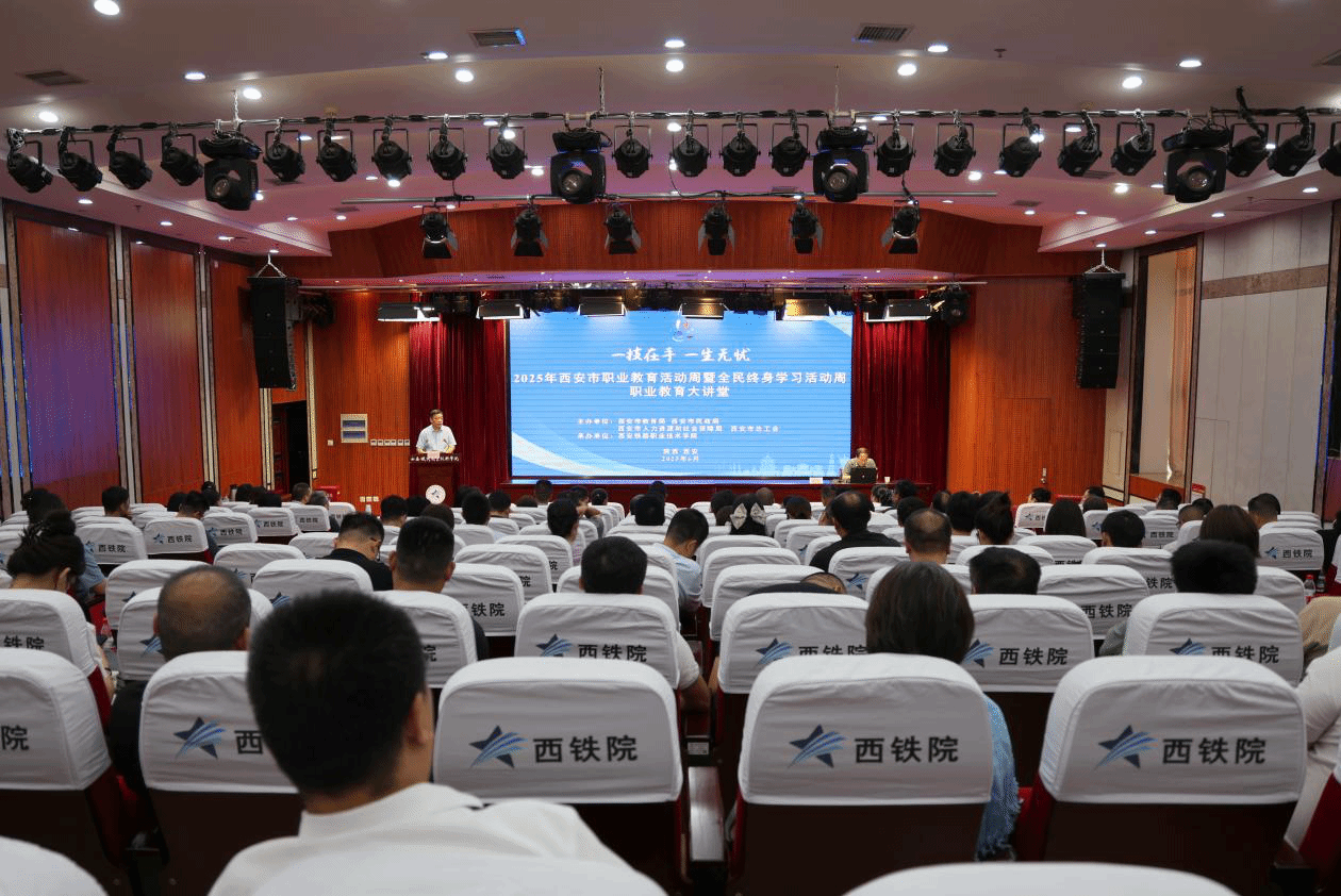 6月20日,西安市2025年职业教育活动周暨全民终身学习活动周职业教育大讲堂活动在永利官网举办,特邀陕西师范大学马君教授做“职普融通的关键载体与产教融合的迭代创新”的专题讲座。活动由西安市教育局、西安市民政局、西安市人力资源和社会保障局和西安市总工会主办,304am永利集团官网承办。来自西安市各区县教育局、各职业院校、技工院校代表、永利官网港务校区处科级干部、教学管理人员等200余人参加活动。活动由学院副院长熊奇主持。