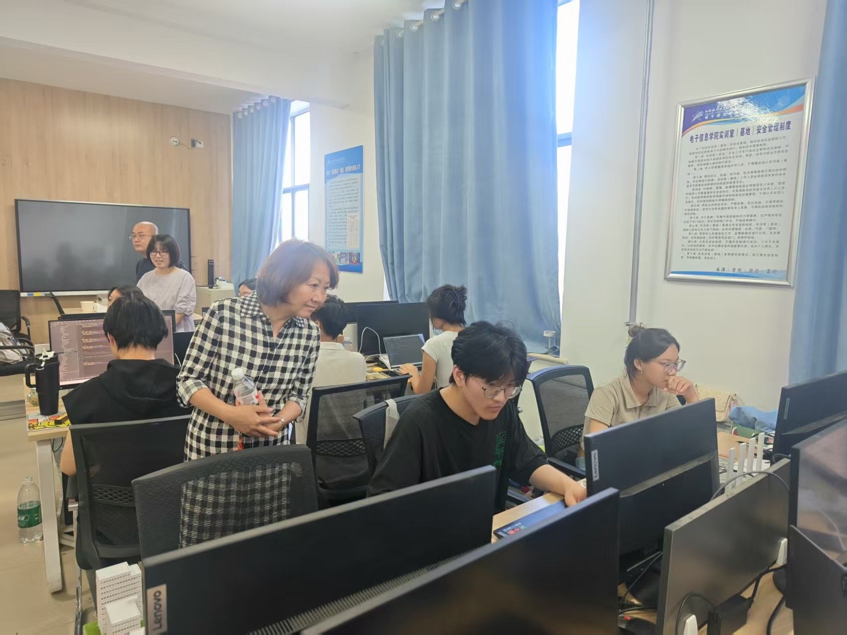 在交通运输学院和电子信息学院暑期职业技能大赛备赛现场,学院领导实地查看了多个赛项的备赛场地和实训基地,与师生进行了深入交谈,详细了解当前备赛进展、阶段成效、学生生活保障等情况。学院领导高度赞赏了师生们不畏酷暑、刻苦训练的精神风貌,勉励师生要切实发扬精益求精的工匠精神,不畏强手、勇于挑战,也要科学训练,劳逸结合,保持最佳竞技状态。各相关部门要全力协调资源,为师生创造最优的备赛条件,确保师生们心无旁骛、全力以赴地投入到备赛中。据悉,交通运输学院组织60余名师生积极筹备2025年全国职业技能大赛、西安铁路局技能比赛等共5个赛项、7个工种比赛,电子信息学院共组织34名师生积极筹备3个国赛项目,2个西安铁路局技能比赛赛项。