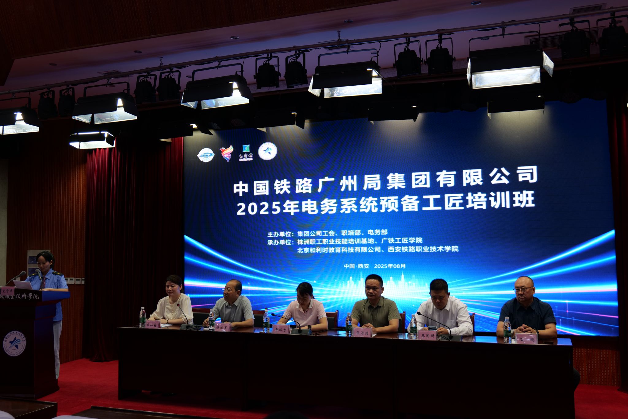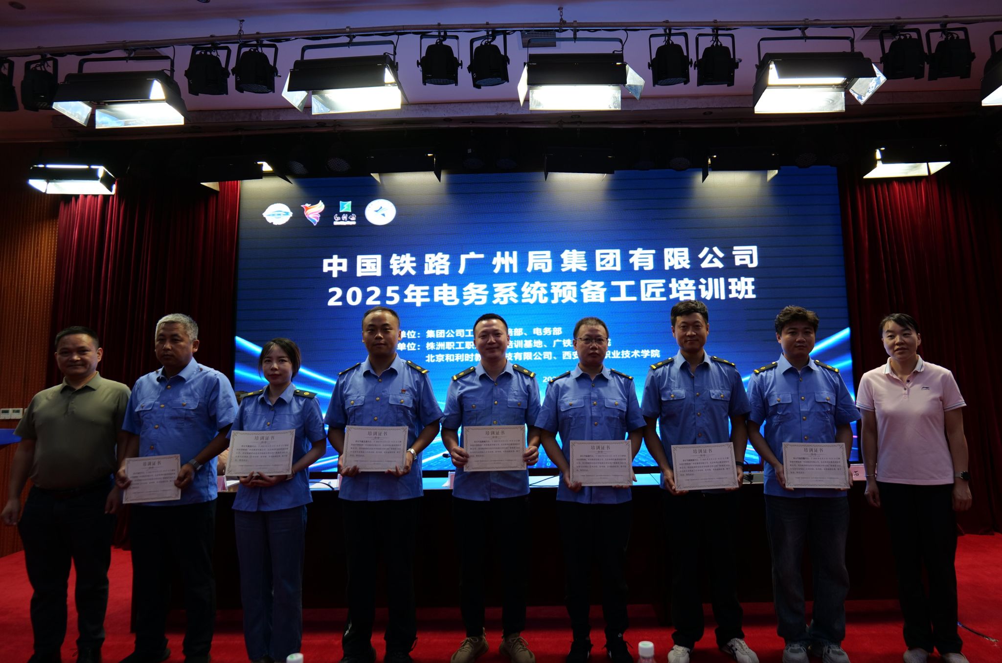 8月15日上午,由中国铁路广州局集团有限公司主办、304am永利集团官网与北京和利时教育科技有限公司联合承办的“中国铁路广州局集团有限公司2025年电务系统预备工匠培训班”结业典礼在西铁院港务校区办公楼报告厅隆重举行。广州局电务部培训主管曹龄兮、和利时教科公司总经理王国研、西铁院党委副书记任治军等领导及全体46名学员出席典礼,共同见证这场赋能铁路高技能人才的匠心之旅圆满收官。典礼由继续教育学院副院长曾小莉主持。