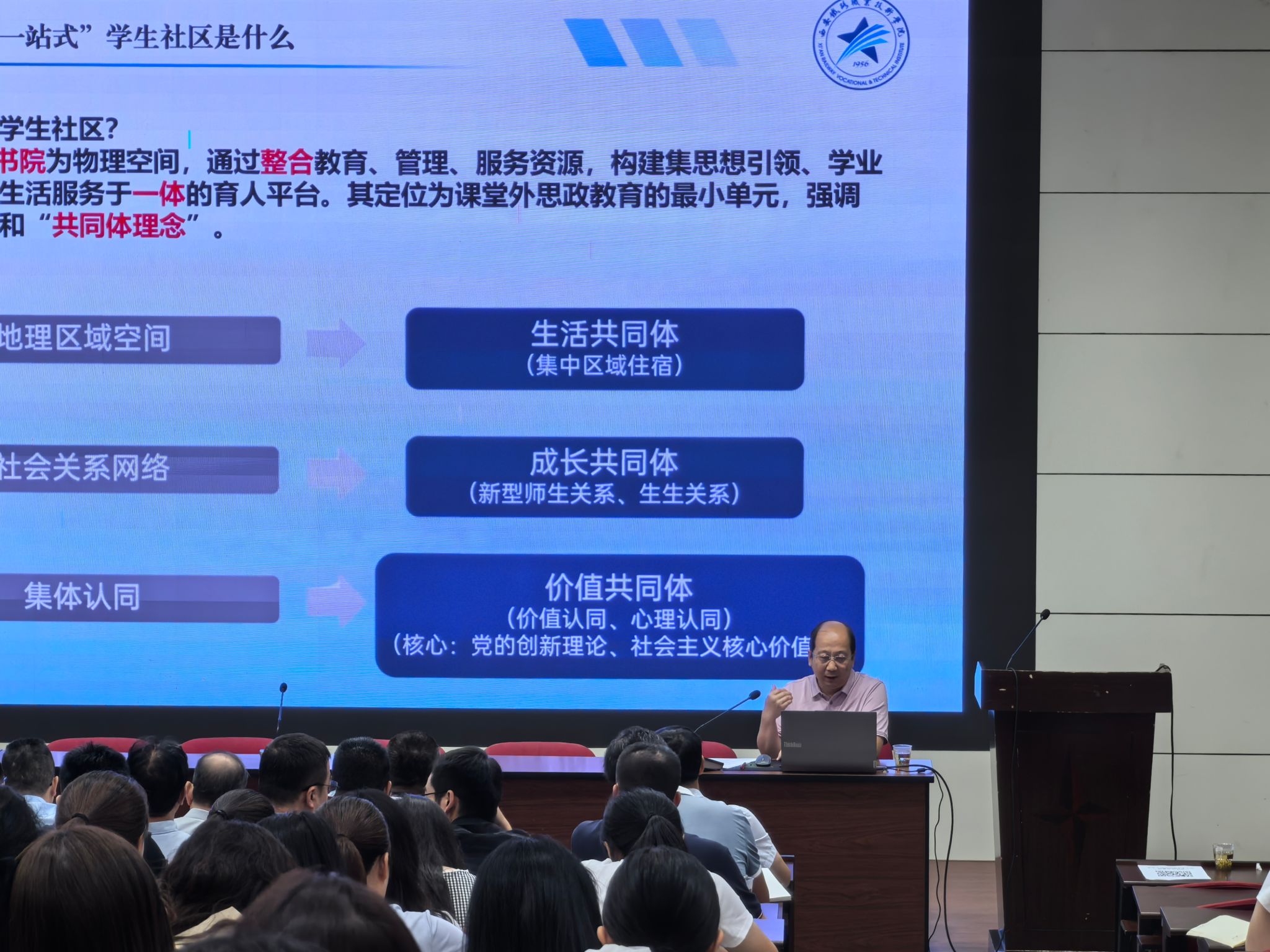 会议第一阶段,学工部部长李栋以《学生社区小天地 五育并举大文章》为题作专题分享。他系统阐述了“一站式”学生社区从概念提出、标准制订到落地实践的全过程,重点围绕“是什么、怎么建、如何干、建示范”四个维度,全面总结了永利官网在社区建设方面取得的实践成果和宝贵经验,为下一阶段推进全国示范“一站式”学生社区管理创新提供了方法与思路。