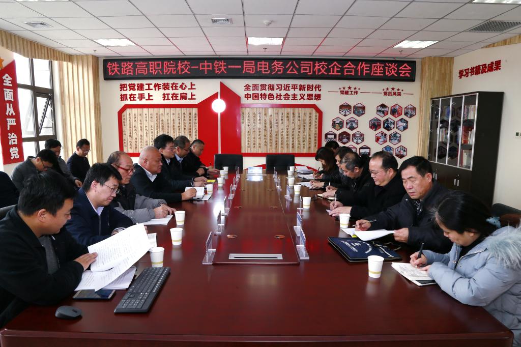 12月28日,中铁一局电务公司在西安总部顺利举办2019届跟岗实习生岗前培训开班典礼暨校企合作座谈会。公司总经理高建峰,全国劳模、电务公司电力试验所、窦铁成技能大师工作室、火车头劳模创新工作室负责人、电力工工匠技师窦铁成,电务公司总工程师、副总经理左传文等专家和领导出席会议。陕西铁路工程职业技术学院、西安铁路工程职工大学相关领导,以及永利官网招生就业办公室主任、校企合作处处长夏良武,电子信息学院院长孙津平,铁道信号教研室主任冯国良应邀赴会。