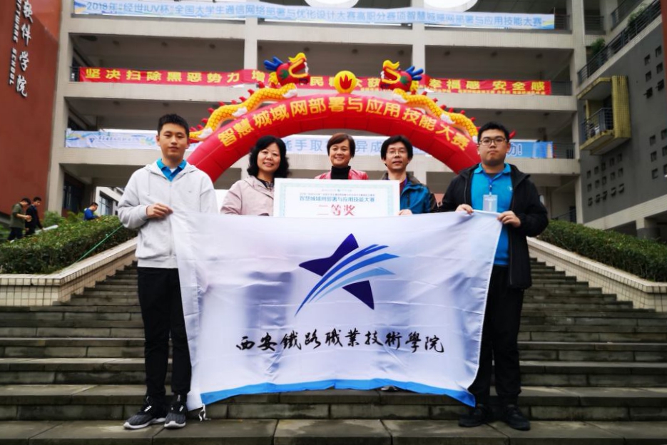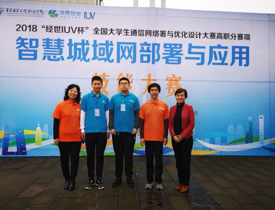 2018“经世IUV杯”全国大学生通信网络部署与优化设计大赛—智慧城域网部署与应用赛项由中国通信学会组织,于10月26至28日在重庆电子工程职业学院举办, 来自全国三十八所高职院校的38支队伍参加比赛。永利官网通信技术专业教师杨国荣和王希庆担任指导教师,组织两名学生参加比赛,经过四个小时的紧张对决,最终荣获团体二等奖。该赛项综合通信技术领域多项技能要求,结合上网、IPTV、VOIP的三网融合业务,对学生进行理论考试、智慧城域网部署与优化、FTTX光纤接入工程实务(VR)、智慧城域网故障排查、紧急故障排除等操作要求,综合考查通信技术专业学生的实践应用能力。