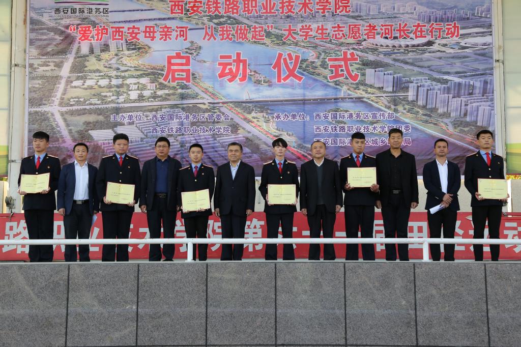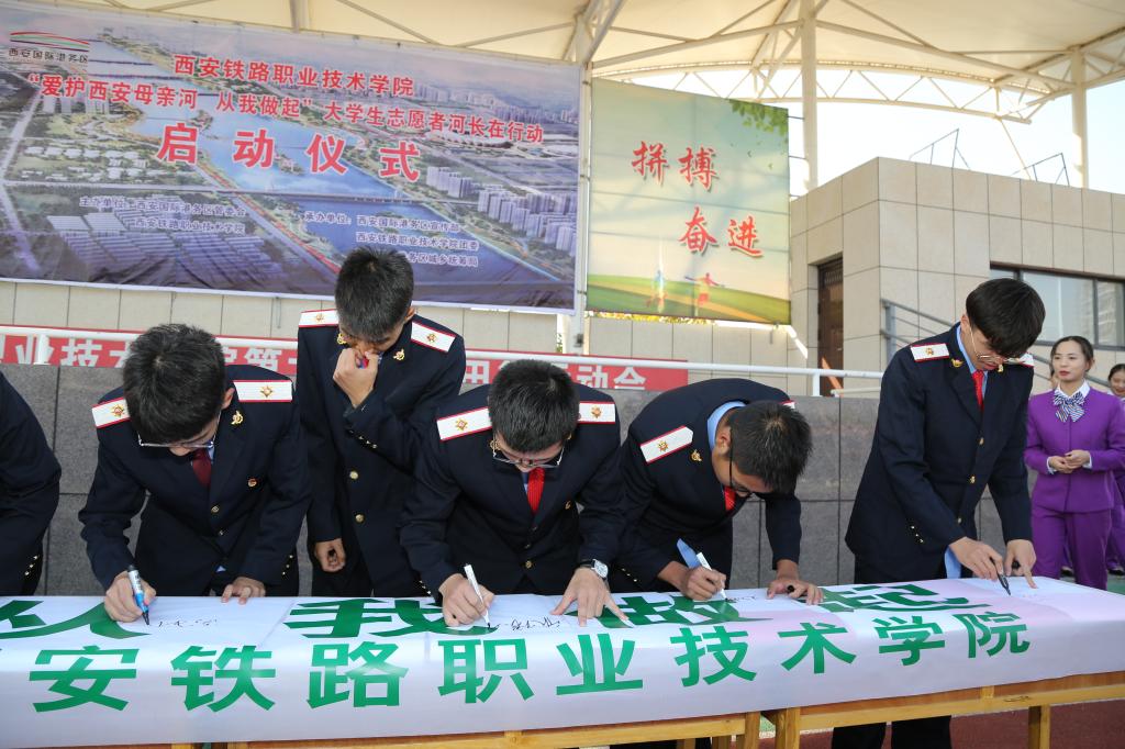 活动现场,国际港务区城乡统筹局局长王红波进行了致辞,黄家昌宣读了《关于成立西铁院“爱护西安母亲河志愿者”大队的决定》以及西铁院首批“大学生志愿者河长名单”,并与其它领导分别为永利官网选拔出的30名优秀学生志愿者河长颁发了聘书,国际港务区城乡统筹局副局长冯闯民宣读了《大学生志愿者河长职责》,永利官网学生侯卓东作为大学生志愿者河长代表进行发言,他号召更多大学生志愿者参与到“灞河水环境保护”中来,保护母亲河从现在做起,从身边事做起,从点滴做起。随后,李翔与黄家昌共同为永利官网“爱护西安母亲河志愿者”大队授旗。活动最后,所有参会人员共同在“爱护西安母亲河,从我做起”的横幅上签名。