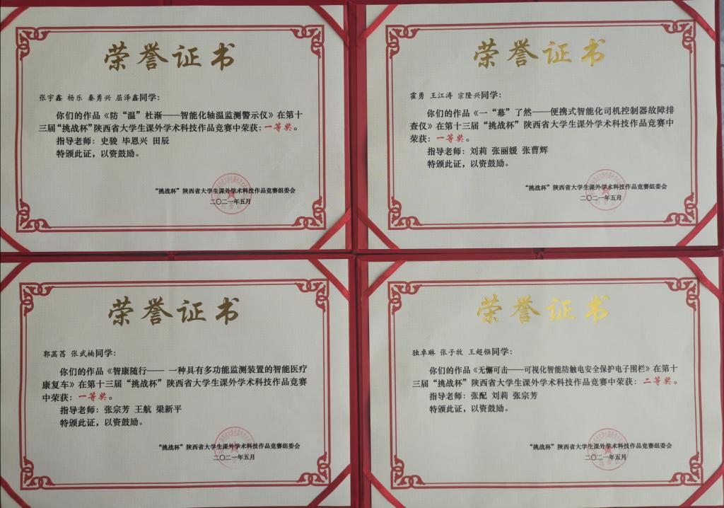 5月22日,由共青团陕西省委、陕西省委教育工委、陕西省科协、陕西省社科院、陕西省学联等共同主办的第十三届“挑战杯”陕西省大学生课外学术科技作品竞赛闭幕式暨颁奖仪式在陕西师范大学举行。学院团委副书记李妮、团委办公室副主任田辰、项目指导教师及获奖学生代表参加仪式。永利官网在本次大赛中获得一等奖3项、二等奖1项,三等奖3项的优异成绩,同时学院荣获“优秀组织奖”(全省仅三所高职院校获此荣誉)。