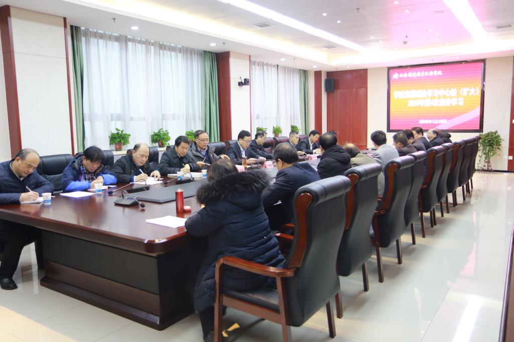 1月18日,学院党委召开第4次中心组(扩大)集体学习,学院领导班子、全体副处级以上干部参加,会议由党委书记施利民主持。