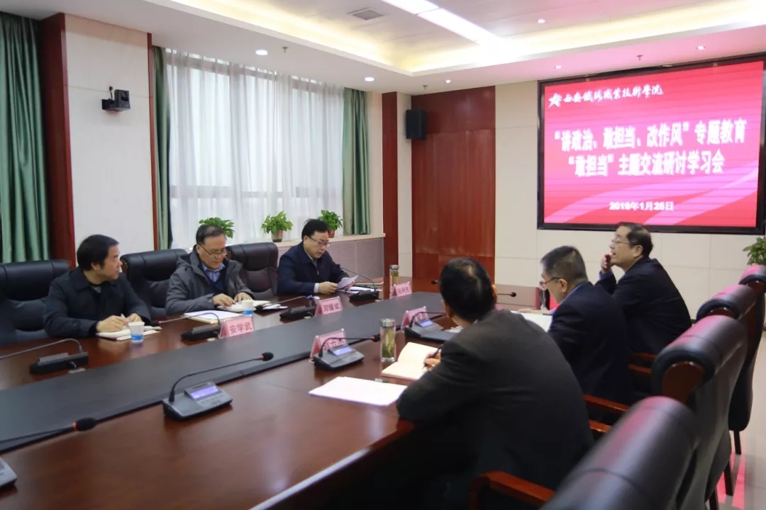 随后,学院领导班子成员围绕“敢担当”主题结合自身工作带头进行了交流发言。