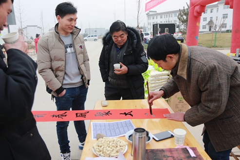 学院驻村工作队邀请到两位书法家来到活动现场,为困难群众现场书写新年春联,并向每户村民都送上了米面油等慰问品,让困难群众喜气洋洋过新年。