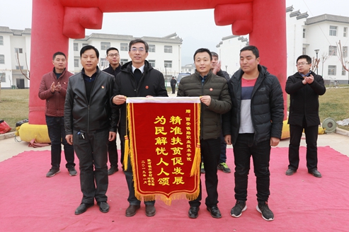 集体乔迁仪式简朴却又隆重。学院扶贫办副主任、党委宣传部部长张家琪宣读了由六合村群众投票选出的“明白老人”“孝顺儿媳”等“村中好人”,给他们披红带花,并送上了纪念品。张家琪代表学院向喜迁新居的困难群众送去了新春祝福,希望他们要尽快适应新的生活环境,努力学习新理念新知识,过上更富足的生活。陈河镇党委、镇政府向学院,六合村村委会向学院驻村工作队分别送上了锦旗。村支部书记马小军代表全体村民在感谢词中说,六合村几年来在学院的帮扶下,村容村貌、生活水平有了翻天覆地的变化,民风村风质朴和谐,群众脱贫致富的愿望非常强烈。现如今又纷纷迁入平原新居,彻底摆脱了山村落后的生活环境,全体村民一定会积极融入新生活,用勤劳的双手创造更美好的生活。
