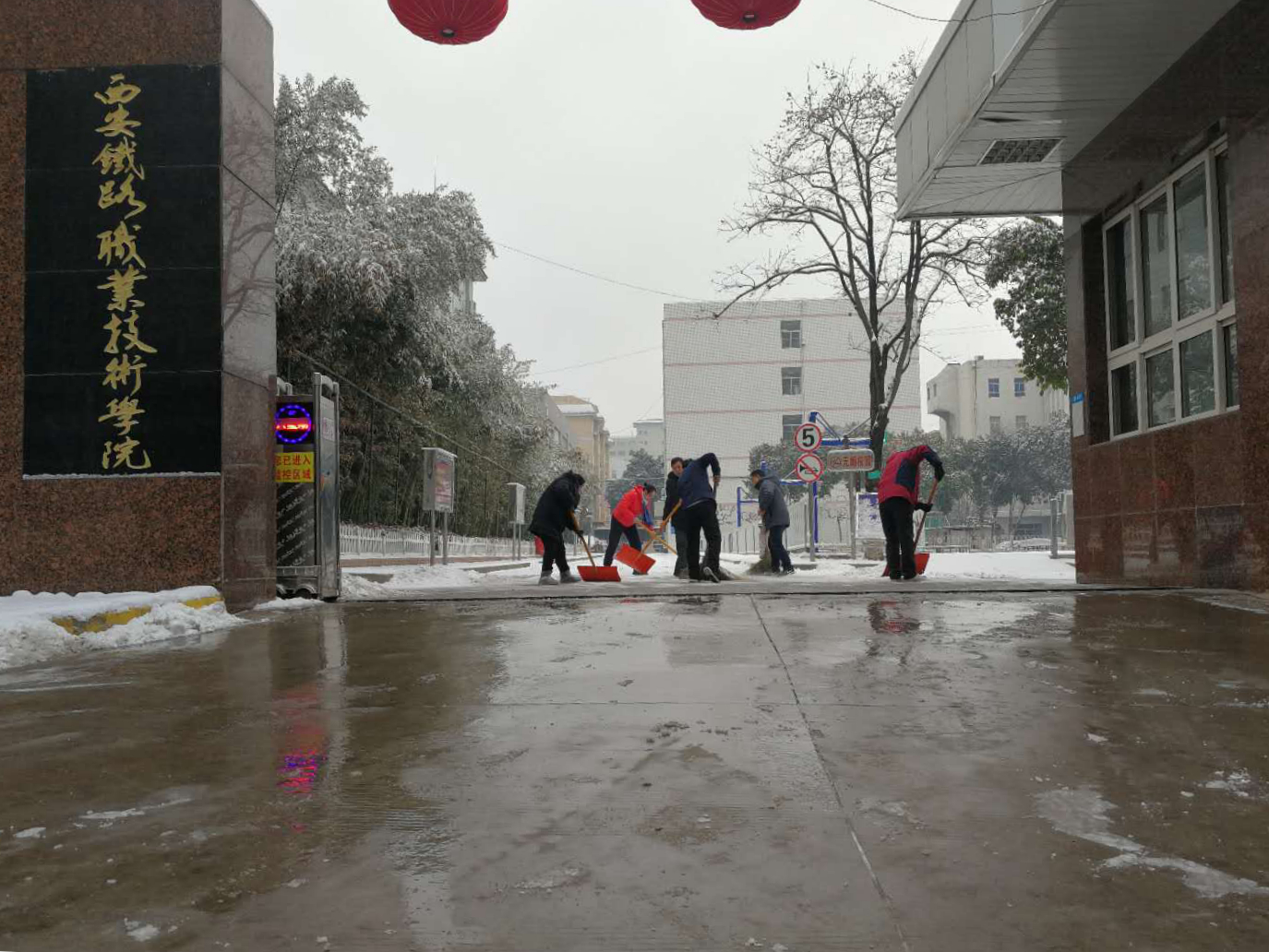 截至发稿时,学院自强、临潼、龙首三校区校园内积雪及校门外公共道路积雪已经全部清扫完毕。