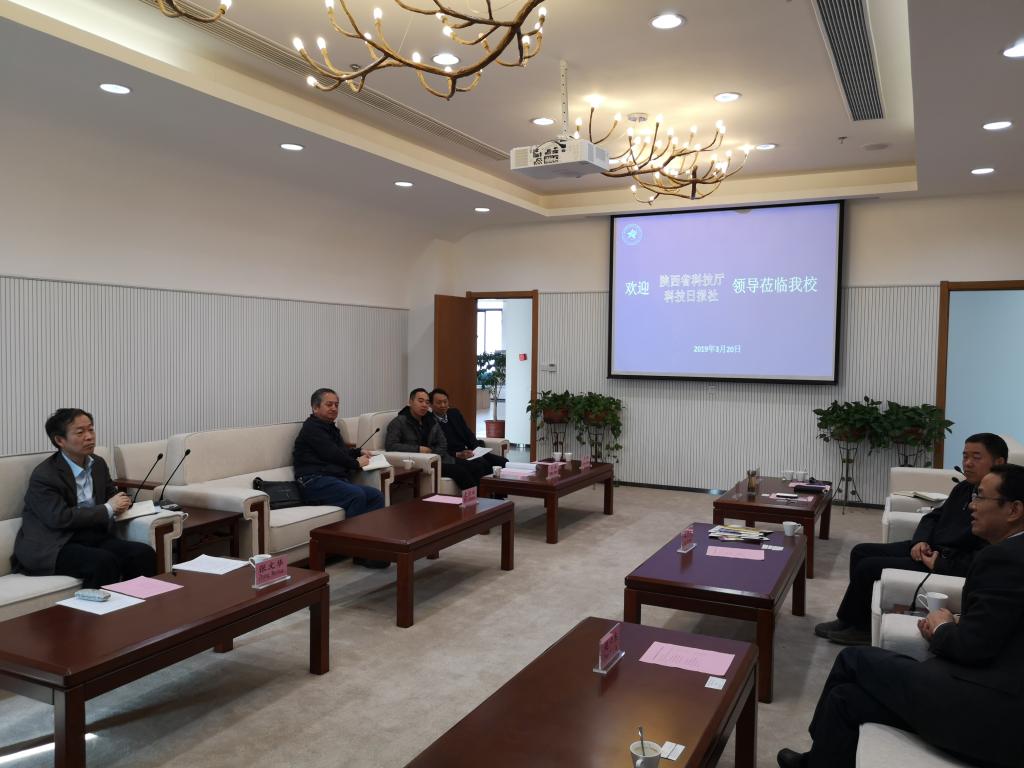 3月20日,省科技厅引智处处长张文华和科技日报社陕西记者站站长史俊斌一行到304am永利集团官网进行业务指导和交流。学院副院长安学武、赵六杰带领国际合作与交流处处长赵景民、教科研处处长赵铁民、宣传部部长张家琪等参加了会议。