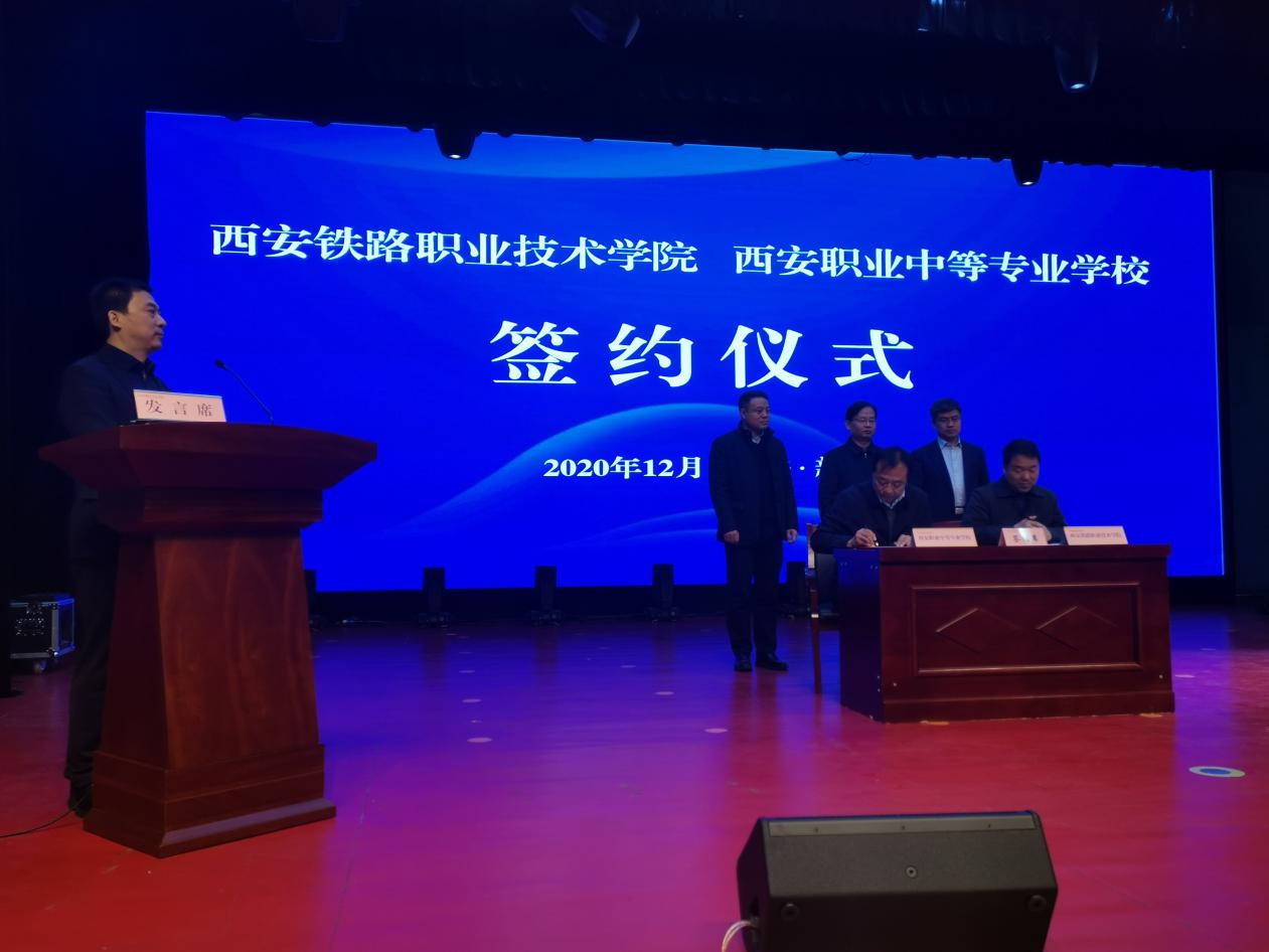 在推进会上,举行了隆重的签约和揭牌仪式,院长赵春平为永利官网合作办学新城校区、继续教育培训基地进行了揭牌,副院长安学武代表学院与西安职业中等专业学校签订了战略合作协议。