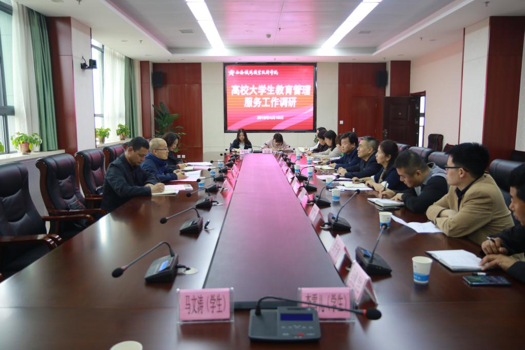 4月10日,新疆驻陕工作组党委副书记、教育小组组长、陕西省委教育工委稳定安全办公室副主任齐庆瑞一行3人就大学生教育管理服务工作来永利官网进行调研座谈。学院党委副书记、纪委书记黄家昌出席并讲话,党委学生工作部全体同志,学院保卫科副科长张庆波、二级学院教师代表及新疆籍少数民族学生代表等参加座谈会。