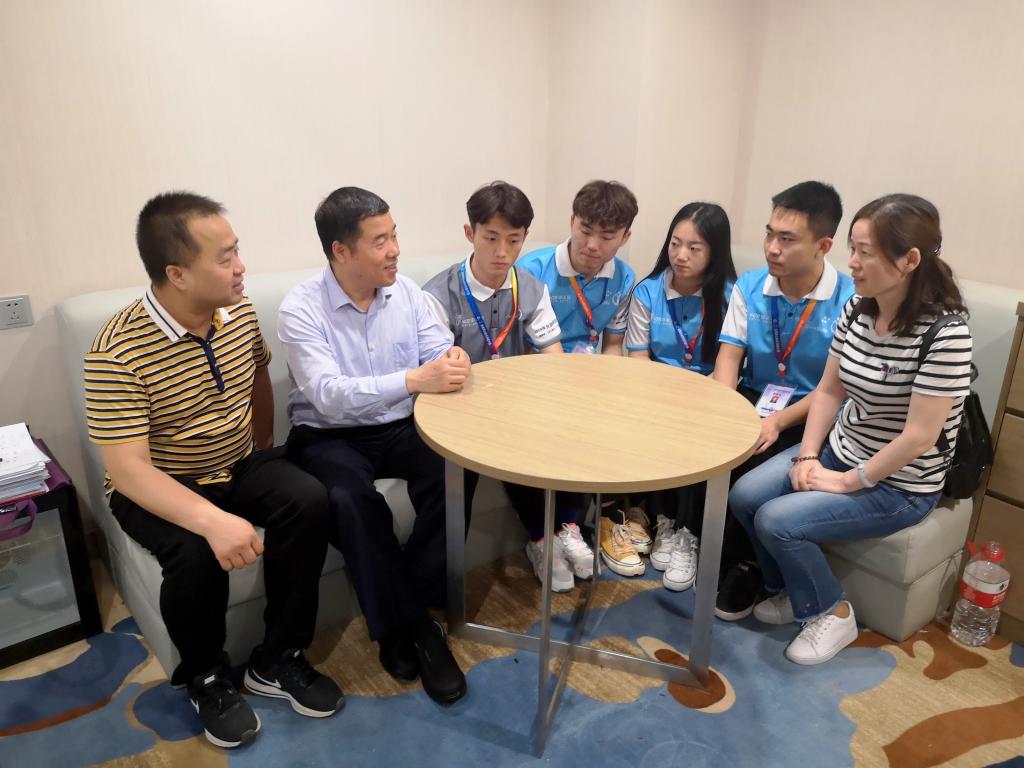 安学武分别到三个赛点慰问学生,与参赛选手及指导老师进行了亲切交谈。在了解了大家的心理状况及食宿安排情况后,高度赞扬了参赛选手们积极训练、忘我投入的良好精神态度。他指出,各参赛选手要尽快适应比赛环境,在赛场上沉着应战,灵活应对,凭借扎实的功底和良好的心态展示自我。同时,指导教师要做好选手的赛前心理和技术辅导,引导同学们发挥出应有的水平。