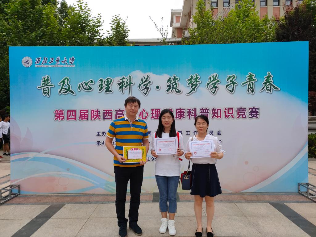 近期,由陕西省委教育工委主办,陕西省高校素质教育研究会和西北工业大学承办的“陕西高校第四届心理健康科普知识竞赛”在西北工业大学落下帷幕。经过激烈的角逐,由临潼校区(土木工程学院)刘鑫、刘媛媛、焦瑶瑶3名同学组成的代表队从参赛的67所高校201名选手中脱颖而出,凭借扎实的理论知识和出色的发挥最终荣获高职组一等奖,燕铁艳荣获“指导教师奖”,学院荣获“优秀组织奖”,创造了永利官网参加该项大赛的最好成绩。